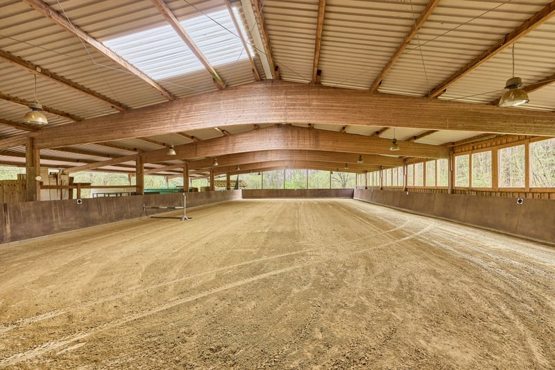 Bitte füllen Sie das nachfolgende Kontaktformular vollständig aus bevor Sie uns telefonisch kontaktieren. Vielen Dank für Ihr Verständnis! Pferdeimmobilie im Saarland (Wadern) mit großem Wohnhaus, moderner Reithalle und direktem Ausreitgelände! Objektbeschreibung: Dieses Gestüt in Wadern-Gehweiler im Nordsaarland überzeugt durch seine ruhige Alleinlage, eine durchdachte Hofstruktur und großzügige Flächen von ca. 40.327 m² im Eigentum zzgl. ca. 28.605 m² Pachtland. Teile der Flächen liegen im Naturschutzgebiet Wadrilltal und unterstreichen die besondere landschaftliche Qualität. Das Wohnhaus (Baujahr 1968–1973) bietet ca. 193 m² Wohnfläche und wurde in solider Massivbauweise errichtet. Es verfügt über eine Einbauküche mit Geräten von Miele und Liebherr, doppelt verglaste Fenster sowie eine Mischung aus Fliesen-, Parkett- und Teppichböden. In den letzten Jahren wurden u. a. die Fassade (2007) sowie 2025 eine moderne Ölbrennwertheizung inklusive Warmwasser, Abgasleitung und Kamin erneuert. Ein Wintergarten mit Blick auf Stall und Weiden, eine Terrasse, Stellplätze und eine Garage ergänzen das Wohnangebot. Die städtische Versorgung mit Wasser, Strom und Glasfaseranschluss ist gewährleistet. Zusätzlich gibt es einen Brunnen sowie eine Kleinkläranlage. Der Pferdebereich ist funktional und gut ausgestattet: Ein Stallgebäude (1996) mit ca. 152 m² bietet 10 großzügige Boxen (3 x 4 m) mit beheizbarem Tränkensystem. Ergänzt wird dieser durch eine Lagerhalle mit überdachtem Mistplatz (2003), Offenstallplätze, Putzplätze und Untersuchungsstand. Die Reithalle (Baujahr 2007) mit einer Reitfläche von ca. 20 x 40 m, hochwertigem Boden (Kirchhellner Sand), Beleuchtung und kleiner Tribüne bietet optimale Trainingsbedingungen. Zusätzlich steht eine Longierhalle (Ø 13 m, Baujahr 2002) zur Verfügung. Koppeln sind direkt vom Hof aus erreichbar! Abgerundet wird das Angebot durch gepflasterte Hofflächen, Maschinenunterstände sowie umfangreiche Lagerkapazitäten für Futter. Eine Bauvoranfrage für einen weiteren Reitplatz mit Ovalbahn liegt vor. Insgesamt bietet die Anlage ideale Voraussetzungen für Pferdehaltung, Training oder Zucht in naturnaher und gleichzeitig gut angebundener Lage. Ausstattung: Wohnhaus: - Baujahr: 1968 – 1973 - Wohnfläche: ca. 193 m², 1 Wohneinheit - Einbauküche aus 1996 mit Geräten von Miele und Liebherr - Heizung: Heizöl aus November 2025 - Sanierungen: Leitungssysteme aus 1996, Einbau einer Ölbrennwertheizung inkl. Warmwasser- RLU in & Einbau einer Abgasleitung für Überdruck in einem bestehenden Schacht im Jahr 2025, Fassade in 2007 erneuert, Kaminofen im Wohnzimmer Fabr. Oranier aus 2025 - Massivbauweise, nicht unterkellert - Fenster: Doppelverglasung, Holz & Kunststoff (außer Wintergarten im OG) - Wintergarten mit tollem Ausblick zum Stall und den Weiden, genutzt als Büro Versorgung: - Neu verlegte Strom und Glasfaseranschlüsse direkt zum Wohnhaus - Städtische Wasserversorgung: Wasserleitung wurde 2010 neu zum Haus gelegt - Brunnenanlage: für Stall und Brauchwasser Toilette und Waschmaschine, Außenanschlüsse (inkl. Pufferspeicher mit 250 Liter Fassungsvolumen und Tiefbrunnenpumpe, automatische Nachspeisung) - Mechanisch-biologische Kleinkläranlage für 4 Personen, Abnahme erfolgte 2004 Pferdestall: - Baujahr Gebäude: 1996 - 10 Pferdeboxen - Maße 3 x 4 Meter mit Drehtüren und geschwungener Ausführung, Trennwände sind flexibel zu entfernen, um Doppelboxen (Abfohlboxen) zu errichten - Tränkenheizung: Thermostat mit Kreislaufsystem Fabrikat Suevia, Selbsttränken (im gesamten Stall und auf den Paddocks) - Dach: Ziegeleindeckung und Lüftungssteine, First-Lichtband - Massivbauweise mit gemauerten Wänden, Innen- und Außenputz Angrenzende Lagerhalle mit Mistplatz: - Anbau der landwirtschaftlichen Lagerhalle mit überdachtem Mistplatz im Jahr 2003 an den bestehenden Pferdestall - Mistplatz mit 24 m² - 6 Offenstallplätze im Außenstall - Putzplätze & Untersuchungsstand vorhanden - Dach: Stahlkonstruktion mit Trapezblech Reithalle: - Baujahr: 2007, Baugenehmigung 2003 / 2004 (Maße 27,5 x 45 Meter) - Anschleppung für Maschinen, 2 Laufställe (3 x 5 Meter) - Reitfläche: 20 x 40 Meter - Boden: Kirchhellner Sand auf Lava - Beleuchtet - Konstruktion: Holz-Leimbinder - Dach: Trapezblech mit Anti-Tropf Beschaffenheit und Lichtplatten Longierhalle: - Baujahr: 2002 - Durchmesser: 13 Meter - Boden: Split, Wabengittermatten - Holz-Bande & Beleuchtung vorhanden Koppeln: Direkt am Hof zu begehen gelangen Sie auf die Koppelflächen. Weiteres: - Mistplatte am Stallgebäude, überdacht (genehmigt) - Gepflasterte Hofflächen - Maschinenunterstand und Carport am Stall - Futterlagerung an der Reithalle von bis zu 150 Rundballen Lage: Der Ortsteil Gehweiler der Stadt Wadern im Landkreis Merzig-Wadern ist verkehrstechnisch gut an das regionale und überregionale Straßennetz angebunden. Über die nahegelegene Autobahn A1 sowie die Anschlussstellen Braunshausen/Kastel und Nonnweiler ist eine schnelle Verbindung in Richtung Saarbrücken (ca. 60 Autominuten), Trier (35 – 40 Autominuten) und Luxemburg gewährleistet. Der nächste größere Flughafen ist der Flughafen Saarbrücken (SCN), der in etwa 50–60 Minuten mit dem Auto erreichbar ist. Alternativ stehen auch die Flughäfen Luxemburg und Frankfurt-Hahn in gut erreichbarer Distanz zur Verfügung. Der Hof befindet sich in ruhiger, naturnaher Lage im Ortsteil Gehweiler der Stadt Wadern im Hochwaldgebiet. Die Ortschaft Gehweiler liegt in einer Höhenlage von 300 bis ca. 330 m. über N.N. und ist dem Schwarzwälder Hochwald mit Höhen zwischen 600 und knapp 700 Metern vorgelagert. Trotz der idyllischen, ländlichen Umgebung ist die Grundversorgung in kurzer Fahrdistanz sehr gut erreichbar. Im nahegelegenen Stadtgebiet Wadern stehen sämtliche Einrichtungen des täglichen Bedarfs zur Verfügung. Dazu zählen mehrere Supermärkte, Bäckereien sowie vielfältige Einzelhandels- und Dienstlei