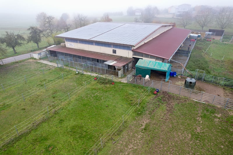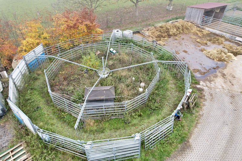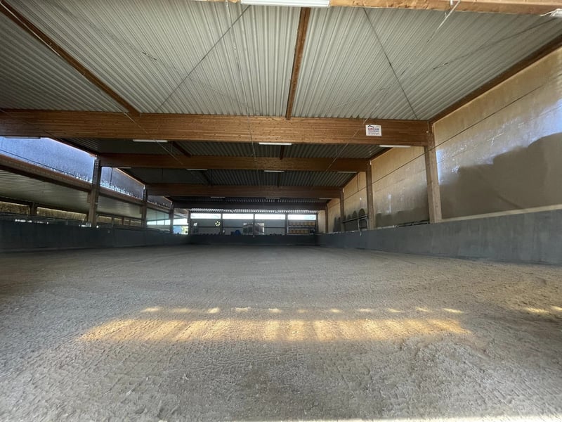 This attractive equestrian facility is located in Osterburken, within the Rhine-Neckar metropolitan region, and offers optimal conditions for riding and equestrian sports on 3 hectares of owned land and 1 hectare of leased land. The location impresses with excellent access to the highway, an attractive catchment area, and proximity to residential developments – making it ideal for a variety of uses. Constructed in September 2010 and opened in 2011, the riding facility is well-maintained and features modern infrastructure. The main building includes an indoor riding arena measuring 20 x 40 meters, providing versatile training options. The property can accommodate up to 30 horses, distributed as follows: • 20 paddock boxes • 3 open stalls for 2, 2, and 6 horses respectively This estate is suitable for both private horsekeeping and professional use, such as a boarding stable, training operation, or riding center. Features: • Leading rein system for 4 horses (16-meter diameter) • Horse solarium (new, not yet connected) • Sand footing, currently being renewed • Bowe irrigation system with computer control • Heated drinking troughs • Opportunity to acquire or lease adjoining land for expansion Optional: Residential Building: Approximately 900 meters away, there is a residential house (built in 1952), which can serve as an ideal addition to the riding facility. The house comprises three units of approximately 90 m², 90 m², and 50 m² of living space. The purchase price for the house is €250,000 plus broker’s commission. Alternatively, it is possible to construct a private residence directly on the property. Potential and Usage Options: The riding facility offers excellent prospects for diverse concepts, including: • Boarding and training operation • Riding school or training center • Equine clinic, veterinary practice, or rehabilitation center Particularly attractive is the option to establish a veterinary facility, as no comparable clinic is located within a 100-kilometer radius. Its convenient transportation links provide ideal conditions for successful establishment. Summary: The equestrian facility in Osterburken represents a unique opportunity for horse enthusiasts, investors, and entrepreneurs. With its modern amenities, versatile usage potential, and generous land area, it offers space for visions and growth—whether as a riding operation, training center, or specialized equine competence center.