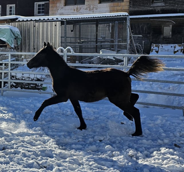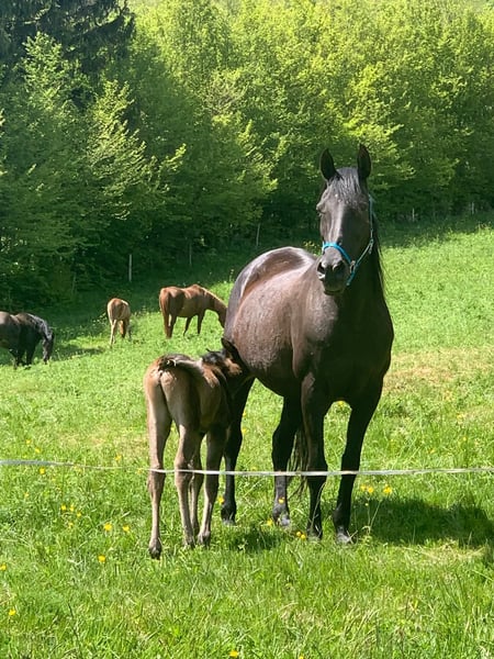 Verkaufe edlen Vollblutaraber-Hengst – perfekt für den Distanzsport! Dieser beeindruckende Rappe wurde im Jahr 2025 geboren und besticht durch seine elegante Erscheinung sowie sein ausgeprägtes Temperament. Als Vollblutaraber vereint er Kraft, Ausdauer und Schönheit – ideale Voraussetzungen für anspruchsvolle Distanzritte. Der Hengst ist gesund, gut aufgezogen und zeigt viel Potenzial für den Einsatz im Distanzsport. Seine freundliche Art macht ihn zudem zu einem angenehmen Partner für erfahrene Reiter. Sein Vater ist unser goldprämierter Va-Hengst Al Shahhar al Azim: Malik wächst hier zusammen mit seinen Geschwistern auf. Unsere großzügigen Bergwiesen eignen sich hervorragend zur Aufzucht und sorgen für genügend Auslauf und starke Gelenke. Bei Interesse stehe ich gerne für weitere Informationen und eine Besichtigung zur Verfügung.