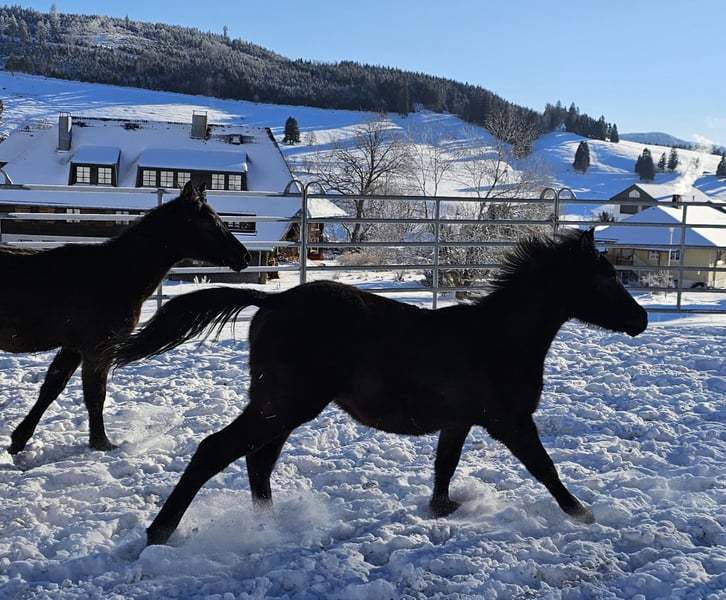 Verkaufe Vollblutaraber-Hengst im Winterplüsch Zum Verkauf steht ein beeindruckender Vollblutaraber-Hengst, geboren im Jahr 2025. Dieser elegante Rappe vereint typische Araber-Charakteristika mit einer edlen Erscheinung und hervorragenden Zuchtqualitäten. Aswad wurde als Saugfohlen vom ZSAA mit einer 2 Sterne Prämie ausgezeichnet und gilt als Hengstanwärter. Sein edles Exterieur, seine ausgeglichene Persönlichkeit und sein Potenzial machen ihn zu einem wertvollen Zuchtpartner. Seine Mutter Malaaha von der Büreten ist Verbandsprämienstute und stammt aus der aussterbenden Stutenlinie der Armenia. Sein Vater ist unser goldprämierter Rapphengst Al Shahar al Azim, der durch sein sanftes Wesen und seine herrausragenden Gänge besticht. Bei Interesse stehe ich gerne für weitere Informationen und eine Besichtigung zur Verfügung. Kontaktieren Sie mich, um mehr über dieses außergewöhnliche Pferd zu erfahren!