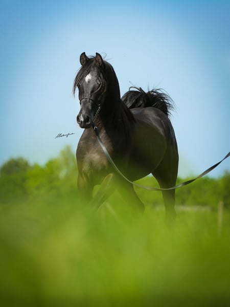 Exceptional Arabian Stallion – Born 2022 Discover the beauty and elegance of this stunning black Arabian stallion, born in 2022. Standing at 153 cm, he embodies the classic Arabian grace combined with impressive breeding heritage. Perfect for enthusiasts seeking a promising young horse with exceptional lineage, this stallion offers both beauty and potential. Well-handled and healthy, he is ready to become a valuable addition to your breeding program or riding endeavors. Don’t miss the opportunity to own this remarkable Arabian horse. Contact us today for more information!