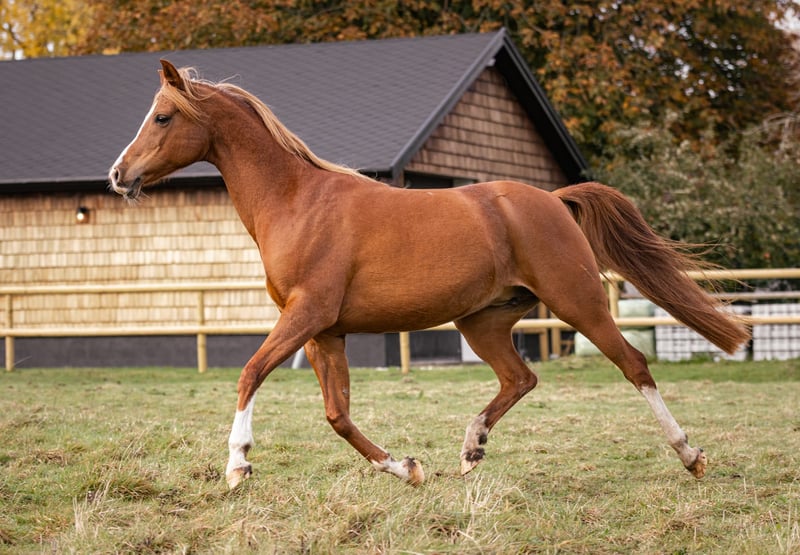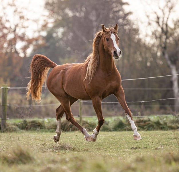 Waliyyah APN is a beautiful chestnut OX Arabian mare with incredible floating gaits, where her trot in particular can be highlighted. She clearly shows heat and is a very good mother. She has produced a beautiful well-moving crossbred in 2023 by an Akhal Teke stallion, Mudaris. She is very well suited to breeding due to her mind and gaits, plus an impressive pedigree. Waliyyah has been ridden earlier in her life and has started distance events up to 40 km. However, du to an early injury as a foal has limited her suitability for riding. She has not been under saddle in 5 years, but could perhaps be started again for easy leisure riding. Her main potential though is as a broodmare or a companion horse. She is a beautiful mare with an equally beautiful mind. She is smart, cool, sensitive with an incredible on/off switch. Her full pedigree can be seen here: https://beta.allbreedpedigree.com/waliyyah-apn-T8jqPh62/pedigree