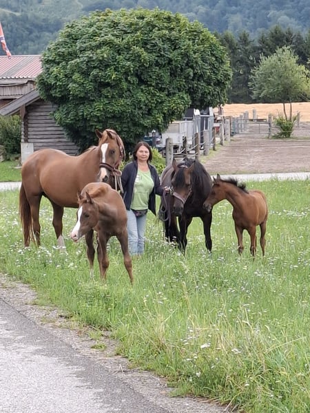 Zuchtstuten mit Fohlen bei Fuß stehen zum Verkauf. Beste Abstammung der Stuten rein russisch und russisch-polnisch. Sowohl Stuten und Fohlen haben wunderschöne Bewegungen. Alle Pferde mit korrektem Fundament, viel arabischer Ausstrahlung. Beide Stuten mit mehreren Klassensiegen und Championatstitel beim Araber-Sommerfestival in Stadl Paura. GRACIA MON AMIE Mutter: MOLDAVIA von TR VIKOR aus der PJATAKOVA Vater: GILLY J von EKSTERN aus der GEORGIA