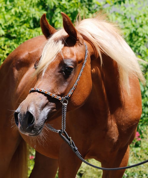 Giulia is a powerhouse! She is beautiful chestnut filly with flaxen mane and born in 2024. Her sire is Martinez (Martice x Al Milania by Al Milan) who traces back to well known Al Amrya. Her dam is our Multi Champion Mare Giuliette Adjuvense (Lotos x K.I.M. Grazija by K.I.M. My Destiny). Giulia's mother is not only a show champion... she is also ridden and a therapy horse. We use our horses in our therapeutic work with children and adults with physical, social and mental disabilities. Giuliette became ambassador for the breed and awarded the WAHO Trophy in 2023 for Austria. Recent video of Giulia is available on request! So if you are interested to add this beautiful treasure to your breeding and sport program, contact me for more informations! We are sure, Giulia will do it all in the future - shows, sports, breeding, and of course being a best friend. Tel.: 0043 6 7 6 9 7 4 5 2 7 0 Photo by Doris Dobetsberger