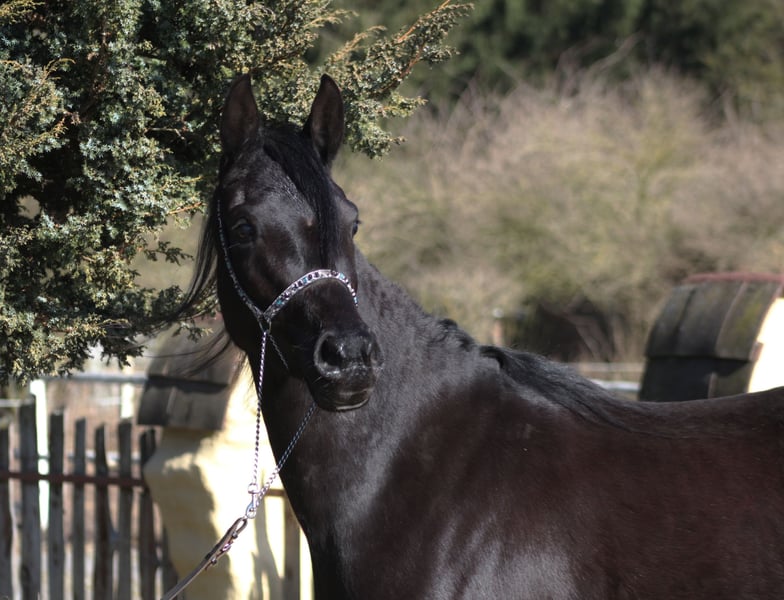 Prachtige 4-jarige merrie, zwart homozygot door afstamming, op zoek naar een nieuw thuis. Correcte, stevige bouw, uitstekende bewegingen. Ze is erg groot, geschatte uiteindelijke hoogte rond de 1,60 m, momenteel al een stevige 1,58 m (laatste foto)! Mooi gezicht, prachtige lange hals, correcte benen en hoeven. Bijna geen wit, volledig zwart lichaam en benen, slechts een kleine ster op haar voorhoofd. Interessant pedigree Vaderlijn: Kuhailan Afas of ar. 1930, geïmporteerd 1931 Gumniska (PL) Moederlijn: Abeyah of ar. 1896, geïmporteerd 1906 H. Davenport (VS) In haar pedigree zijn beroemde lijnen te vinden zoals Hafati Vogue, Simeon Shai, The Desperado, Ali Jamaal, Bei Shah, Alegro, Probat en meer... Ze heeft een opvallende houding. Perfect voor de fokkerij, show of endurance/rijden – ze draagt een van de beste endurance bloedlijnen ooit (Wagram****). Geregistreerd bij PASB. Klaar voor het fokseizoen. Hogere prijsklasse. WhatsApp +48 513 179 245