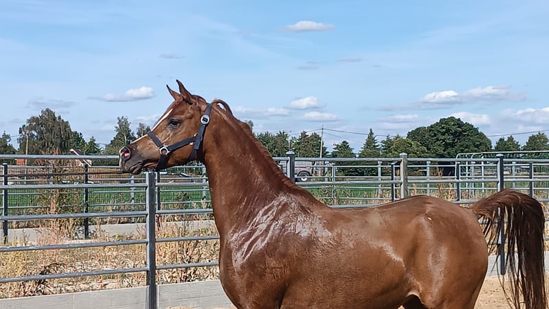 Belle jument alezane avec les lignées de Fa El Rasheem, WH Justice et DA Valentino by Versace. Plus d'informations sur demande.