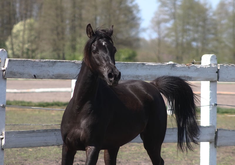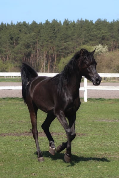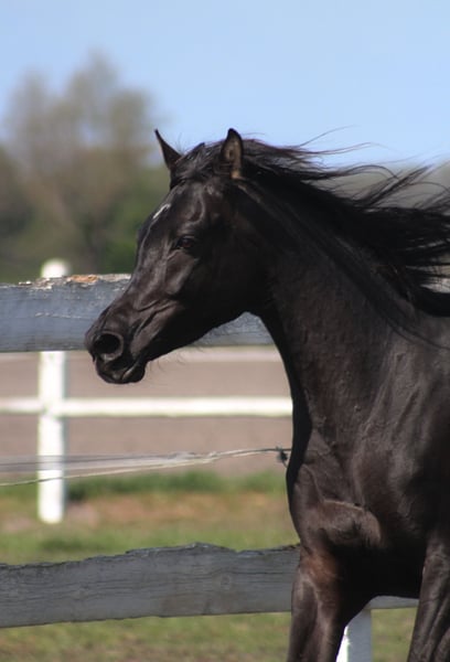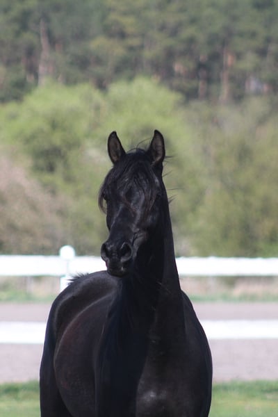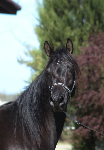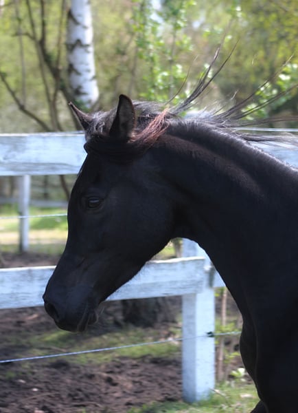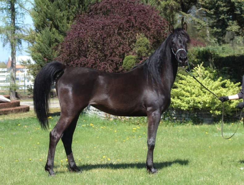 Beautiful 6 yo. mare, black homozygous DNA tested. Correct solid body, Super movements. Height ca. 154 cm Beautiful exotic typy face, long neck, Correct legs and hoofs. Almost no white at all , all black body and legs only a small star. Top pedigree including : Al Ayal AA, The Vision, Hafati Vogue, Ansata Sinan..... Perfect for breeding, show or for endurance/riding . Registered in PASB. Ready for breeding season Higher price range. WhatsApp + 48 513 179 245