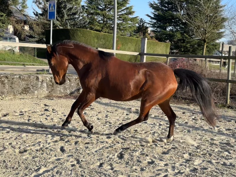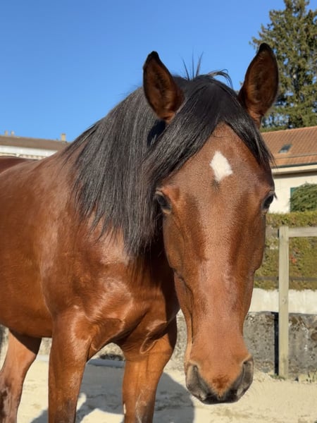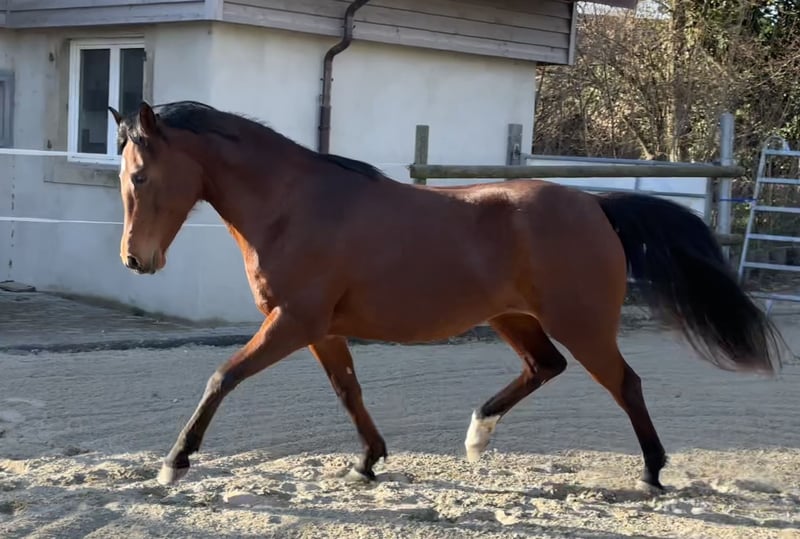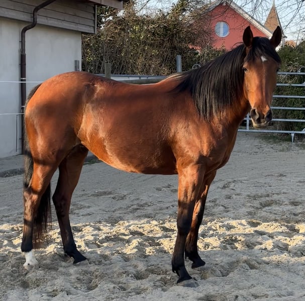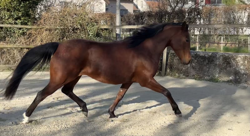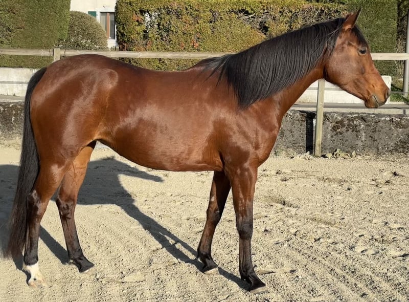 Belle jument disponible pour sport, loisir ou réproduction. Elle aura 7ans en août. Déjà pouliner. Vert dans le travail en selle. Déjà était monté. En pension travail professionnelle chez Jennifer Engisch, professionnelle en horsemanship/éthologique, jusqu'à la vente. Pieds nus, très robuste. Une très gentille jument qui aime le contact être-humain. Elle apprend très vite et volontairement. Prix attractif pour une bonne maison. Pas pour débutants.