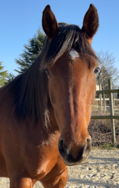 Beautiful mare available for sport, leisure, or breeding. She will be 7 years old in August. She has already foaled. She is still green in saddle work but has been ridden before. She is currently in professional training with Jennifer Engisch, a specialist in horsemanship and ethology, until sold. Barefoot and very robust. A very gentle mare that enjoys human contact. She learns quickly and with enthusiasm. An attractive price for a good home. Not suitable for beginners.