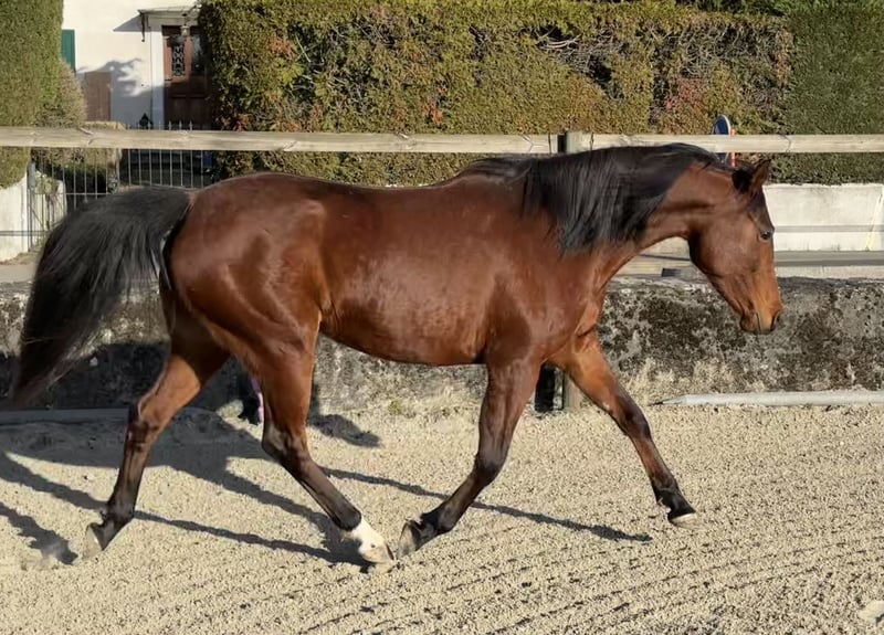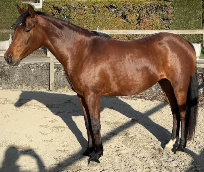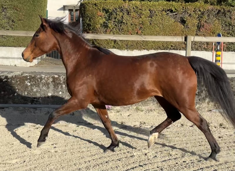Schöne Stute, verfügbar für Sport, Freizeit oder Zucht. Sie wird im August 7 Jahre alt. Bereits gedeckt. Noch unerfahren im Reiten, wurde aber schon geritten. Derzeit in einer professionellen Ausbildungsstation bei Jennifer Engisch, einer Expertin für Horsemanship und Ethologie, bis zum Verkauf. Barhuf, sehr robust. Eine äußerst freundliche Stute, die den Kontakt zum Menschen liebt. Sie lernt sehr schnell und mit großem Engagement. Attraktiver Preis für eine gute Haltung. Nicht für Anfänger geeignet.