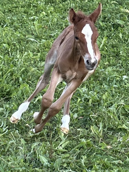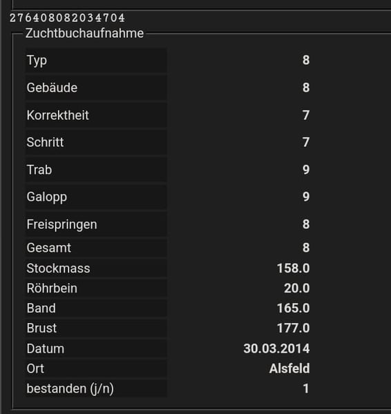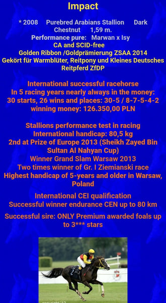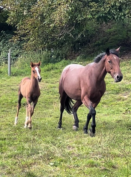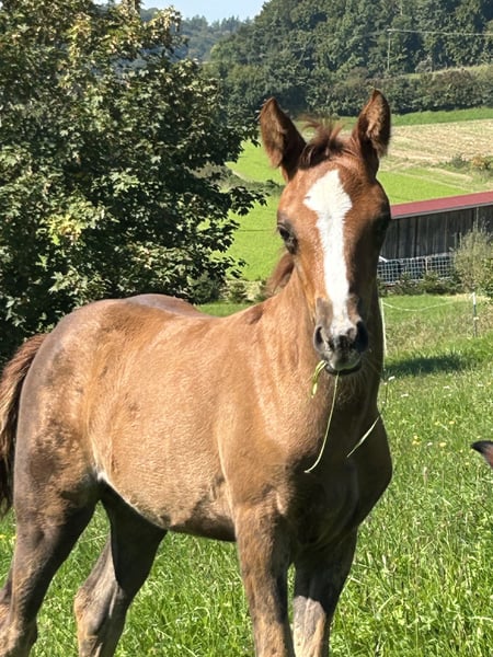 Samee ist der erste verkäufliche Aratang (Araber x Mustang) aus unserer kleinen aber feinen Distanzpferdezucht. Die besten Eigenschaften aus Leistungserprobten Vollblutaraber und Mustang Elterntieren vereint. „Der Aratang erträgt den Hunger, er erträgt den Durst und wird niemals müde“. Samee ist kerngesund und quietsch lebendig, Mitte August 2025 geboren und könnte im März 2026 ihre Mutter verlassen. Sie ist durch und durch ein korrektes,gesundes und für den Reitsport vielversprechendes Fohlen. End-Stockmaß ca. 158cm+ . Sie verliert gerade ihr Fohlenfell und wird Dunkelfuchs. Färbung und Abzeichen entsprechend dem des Vollbruders (Impact) des Vaters ( Mefisto). Mefisto (Elitehengst) steht bei uns im Stall und ist ein gekörter - leistungs-und rennbahngeprüfter VA Hengst. Sein Vollbruder Impact (Goldpämierung ZSAA) ist ebenfalls ein sehr erfolgreicher VA Hengst im Distanz-und Rennsport. Samee‘s Mutter (Sitara) ist eine Mustangstute die wir im Alter von 3,5Jahren aus Amerika (South Steens Herde) roh importiert haben. Sitara hat nun bei uns ihr zweites Fohlen geboren. Sie ist jetzt neun Jahre alt und ist bisher 3000 Distanz-Wettkampfkilometer gelaufen. Sie bekam steht’s Lob - Bestnoten von den Tierärzten und hat makellose Checkkarten. Ansonsten glänzt sie bei uns außerdem in der klassischen Dressur und in der Working Equitation - ein richtiges Ausnahmepferd. Charakterlich ist Sitara einwandfrei und eine fürsorgliche Mutterstute. Ihre erste Tochter gewann vor kurzem, dass VDD Bundes Championat der 5jährigen Distanzpferde in Bitz mit hervorragenden Bewertungen. Wir würden sie am liebsten an einen ambitionierten Endurancereiter verkaufen, um den sportlichen Erfolg unserer kleinen Zucht, weiterverfolgen zu können.