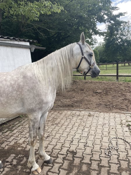 Amun ist ein wunderschöner, sensibler und sehr menschenbezogener Vollblutaraberwallach. Er ist 4 Jahre alt und ca. 155 cm groß. Er wurde vor einem Jahr schonend angeritten, hatte danach aber keine weitere Ausbildung. Deshalb wird er als roh bis leicht angeritten verkauft. Amun geht brav als Handpferd ins Gelände und ist auch beim Spazieren sehr lieb (sowohl alleine als auch zu zweit). • Vollblutaraber • 4 Jahre, 155 cm • roh / leicht angeritten (alle GGA in der Halle) • sehr menschenbezogen und sensibel • brav als Handpferd im Gelände • sozialverträglich in gemischter Herde • Offenstallhaltung gewöhnt Amun sucht erfahrene Menschen mit Gefühl und Geduld. Er braucht Vertrauen und Sicherheit, dann ist er ein absoluter Schatz. Kein Anfängerpferd aufgrund seines Alters. Bei ernsthaftem Interesse freue ich mich über eine Nachricht