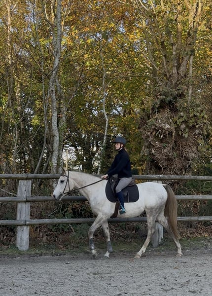 Propose à la vente un super cheval de 4 ans, bientôt 5 ans (avril 2026), hongre, 1m58 au garrot et continue de grandir, avec un mental exemplaire et une vraie envie de bien faire. Cheval extrêmement agréable au quotidien, proche de l'homme, respectueux et qui adore qu'on s'occupe de lui. Il a été débourré cet été et évolue tranquillement dans sa formation : toujours régulier, appliqué et volontaire. Les trois allures sont acquises, propres et régulières. Le cheval se montre très à l’écoute, franc, et facile à canaliser. Il commence le travail sur le plat : les déplacements latéraux sont en cours d’apprentissage, mais il fait preuve d’une belle compréhension, de sérieux et d’application. À l’extérieur il sort seul comme accompagné, sans stress ni appréhension. En balade, il adopte un excellent comportement. Il débute sur les barres, se montre franc, volontaire et toujours prêt à bien faire. En liberté il a déjà sauté 1m20. Ce n’est pour le moment pas un « gros sauteur », mais il montre beaucoup de cœur, une technique en progression et un mental très sain. Il possède toutes les qualités pour évoluer vers du CSO amateur et du loisir sportif. Il a également un papier intéressant pour quelqu’un qui cherche un cheval arabe de sport polyvalent, avec de la finesse et du mental. Ce cheval possède toutes les qualités pour devenir un excellent partenaire de sport, fiable et agréable, pour cavalier souhaitant un jeune cheval bien dans sa tête et prêt à évoluer. Ce beau gris mérite une maison sérieuse ; merci aux curieux de s’abstenir.