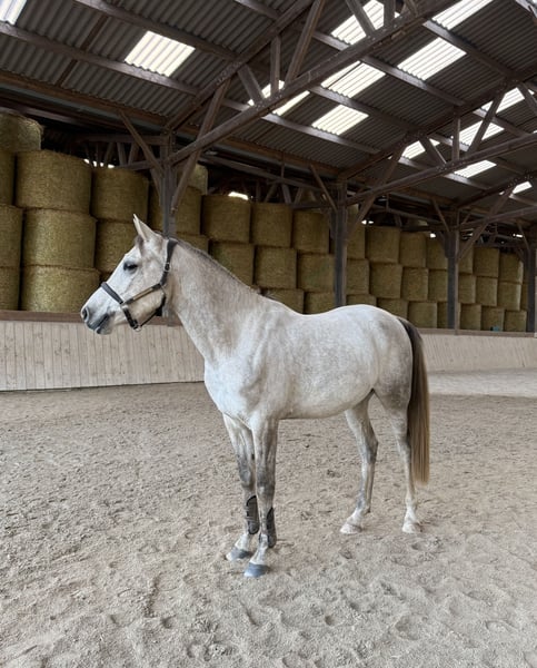 For sale: a fantastic 4-year-old gelding, soon to be 5 (April 2026), standing 1.58 m at the withers and still growing. He has an exemplary temperament and a genuine desire to do well. This horse is incredibly pleasant to handle daily, very approachable, respectful, and loves being cared for. He was backed this summer and is progressing steadily in his training: consistently attentive, diligent, and eager. All three gaits are established, clean, and regular. He is very responsive, honest, and easy to manage. He is beginning work on the flat, with lateral movements in progress; he shows good understanding, seriousness, and application. Out riding, he is confident both alone and in company, without stress or hesitation. He behaves excellently on hacks. He is starting over fences, showing honesty, willingness, and always ready to perform well. He has already jumped 1.20 m in free jumping. While not a heavy jumper at this stage, he demonstrates a lot of heart, improving technique, and a very healthy mind. He has all the qualities to develop into an amateur eventing or leisure sport horse. He also holds interesting papers for someone seeking a versatile sport Arab, with finesse and mental strength. This horse has all the qualities to become a reliable and enjoyable sport partner for riders looking for a young horse with a sound mind and readiness to progress. This beautiful grey deserves a serious home; inquiries from genuine buyers only, please.