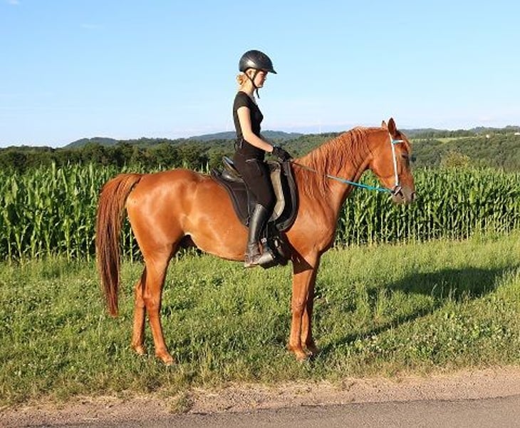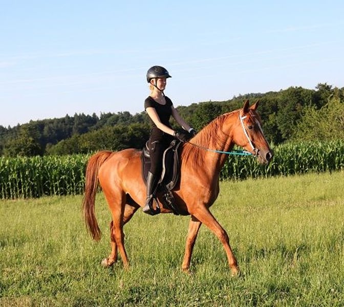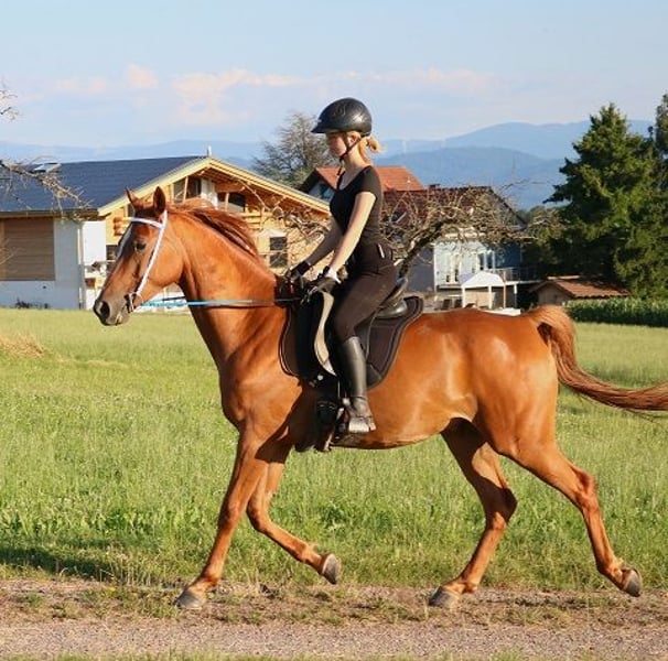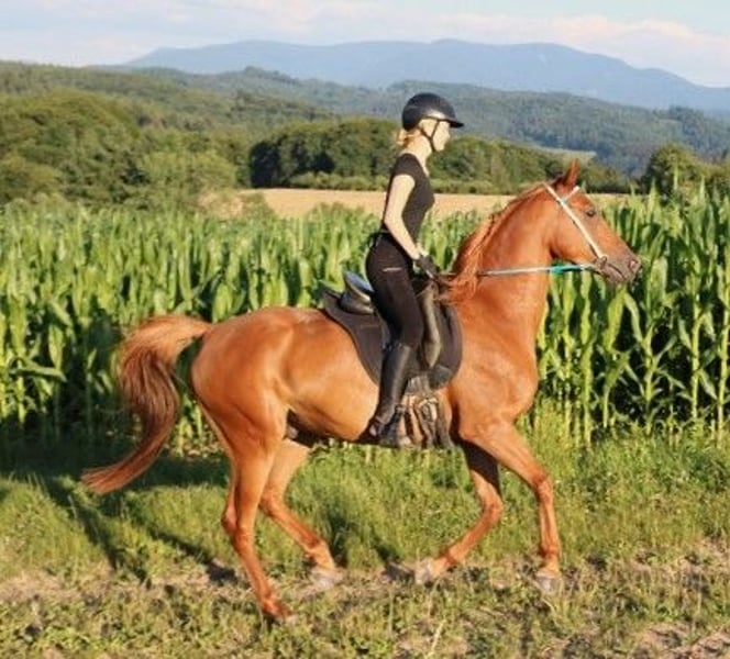 Onaryc ist ein sehr gut gerittener Vollblutaraber. Er wurde erst fünfjährig eingeritten, was ihm nicht geschadet hat. Er ist ein völlig unverbrauchtes Pferd. Der Schwerpunkt wurde anfangs auf die Dressurarbeit gelegt, was sich sehr positiv auf seine Rittigkeit ausgewirkt hat. Er läuft sehr gut an den Hilfen und ist sehr fein zu reiten. Im Gelände hat er auch schon Erfahrungen sammeln können. Er kann problemlos an jeder Position in der Gruppe geritten werden. Da er ein mutiges Pferd ist, läuft er sehr souverän auch ganz vorne als erstes Pferd. Ausritte allein sind überhaupt kein Problem für ihn. Er kennt Straßenverkehr, Kühe und Schafe und geht problemlos durch Wasser. Onaryc ist ein Pferd, das einfach nur laufen will. Er hat riesig Spaß, wenn er sich mit seinem Reiter in Bewegung setzen kann. Durch seine großen Gänge die viel Raumgriff haben, kommt man wirklich gut voran. Seine Gänge sind zudem äußerst bequem zu sitzen. Auf der Weide und im Umgang ist er ein ganz liebes Pferd. Er ist sehr menschenbezogen und kommt einem immer sofort entgegen. In der Herde ist er gut verträglich, er kann auch robust gehalten werden. Sein Körperbau ist korrekt und er hat harte Hufe. Er kennt den Anhänger und den Schmied. Onaryc ist sowohl für entspannte Ausritte, sportliche Wanderritte und auch für Distanzritte geeignet. Ebenfalls macht das Dressurreiten richtig Spaß mit ihm. Onaryc steht im Hunsrück in der Nähe von 56290 Mörsdorf. Er kann jederzeit besichtigt und geritten werden. Kontakt: 01715219230 Nachrichten bitte mit Angabe der Telefonnummer.