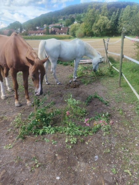 Super schöner kompakt, kräftig gebauter 6 jähriger Vollblutaraber mit einem Stockmass von 1.60 sucht den besten Platz. Er hat eine äusserst starke Hinterhand und läuft von sich aus in einer schönen Anlehnung. Er macht richtig Spass daher bei der Hallenarbeit. Er wurde vielseitig eingesetzt viel in Gelände mit auch drei Distanzritte, schwimmen im See, Gymnastik Cavelletikurs, Hallenarbeit, Longenarbeit am Kappzaum. Er hat ein ruhiges Gemüt. Er ist absolut verkehrssicher, ob Lastwagen, Traktoren oder ein Zug direkt an ihm vorbei fährt, macht ihm nichts. In den Anhänger steigt er gerne problemlos ein. Er lebt in einer Gruppe mit einem Wallach und einer Stute was ihm super gefällt. Er ist total unkompliziert im zusammen leben mit anderen Pferden. Momentan läuft er barhuf oder mit Klebebeschlag. Er ist ein richtiger Sonnenschein, welcher für jeden Spass zu haben ist. Und für seine Leckerlis alles macht. Dabei lernt er sehr schnell Neues, da er sehr clever ist. Aus Zeitmangel in letzter Zeit weniger häufig geritten.