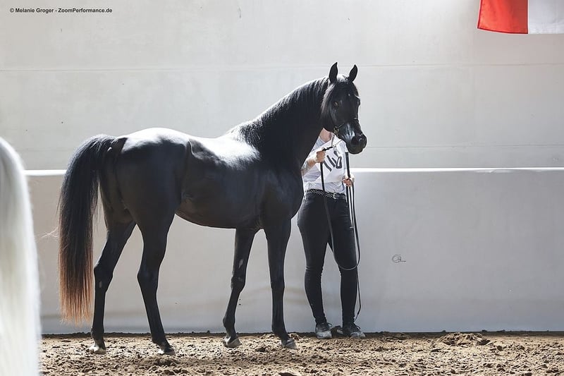 "Pueblo" è un bellissimo e elegante stallone nero con una struttura corretta e andature eccellenti. Pueblo è stato importato da noi come stallone di 3 anni da Janow Podlaski ed è stato utilizzato per la monta (è stato registrato con il nastro d'oro). Lo scorso anno abbiamo deciso di offrirgli una vita probabilmente migliore come castrone e cavallo da sella. Ora viene nuovamente lavorato regolarmente sotto sella e si presenta bene e in modo ordinato sia a mano che sotto sella. Si muove nelle tre andature di base sia in pista che nel terreno. Attualmente è in paddock con un castrone e la convivenza sta andando molto bene. Naturalmente, Pueblo ha i documenti e il passaporto equino ed è regolarmente sverminato e vaccinato.
