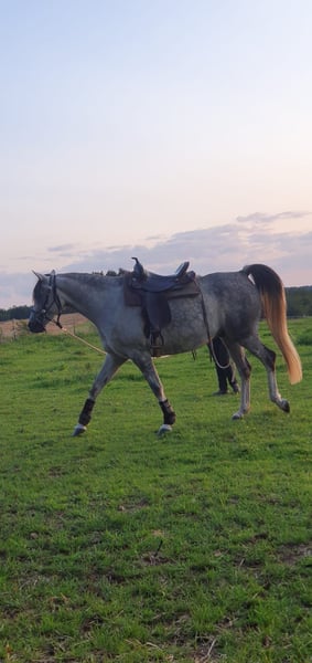 Uroczy i wesoły wałach pełnej krwi arabski z Egiptu, pochodzący z dawnych linii krwi, na sprzedaż. Jest masywnej budowy, porusza się na gołym kopycie i jest kowalowładny. Mieszka z innymi klaczami na padoku. Nie ma żadnych chorób ani złych nawyków. Był używany jako koń szkoleniowy i w terenie. Zna siodło i uzdę, ale nie był jeszcze jeźdzony. Jest bezpieczny przy ogrodzeniu elektrycznym i zna wszystkie pojazdy mechaniczne. Lubi dzieci i zna psy. Niestety, nie mam wystarczająco czasu, aby dalej z nim pracować. Może zostać sprzedany wraz z akcesoriami. Nie jest przeznaczony dla początkujących.