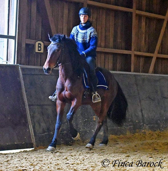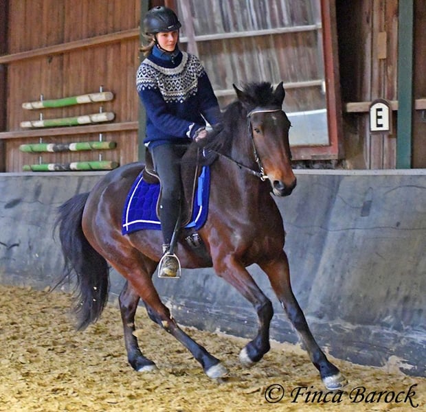 Breed: Warlander Name: Señorita Gender: Mare Height: 15.7 hh (160 cm) Date of Birth: January 14, 2022 Color: Brown Price: €6,700 Sire: Unknown Dam: Unknown Señorita is an incredibly sweet mare with a wonderful, friendly personality. She is still in the process of development and will continue to grow and fill out. Initially, Señorita was quite shy and reserved during her first days. However, she quickly warmed up and now loves spending time with her humans. She has been ridden in basic ground work and is still at the beginning of her training, which we are gradually progressing. She learns quickly and is very attentive, eager to please her rider. Her canter is particularly comfortable and naturally uphill, making it a pleasure to ride. Señorita is not overly reactive to her environment and remains very relaxed during her first small outings. She is accustomed to herd life and has been kept with her mare friend Africana. She tends to be more subordinate rather than dominant in her herd. She is also used to children and dogs. With Señorita, you get a lovely combination of two breeds, already well accustomed to riding, but still with potential for further training. Of course, she is also welcome to continue her training with us. Contact: Finca Barock, Tel. 0173-696 31 81, 56291 Wiebelsheim
