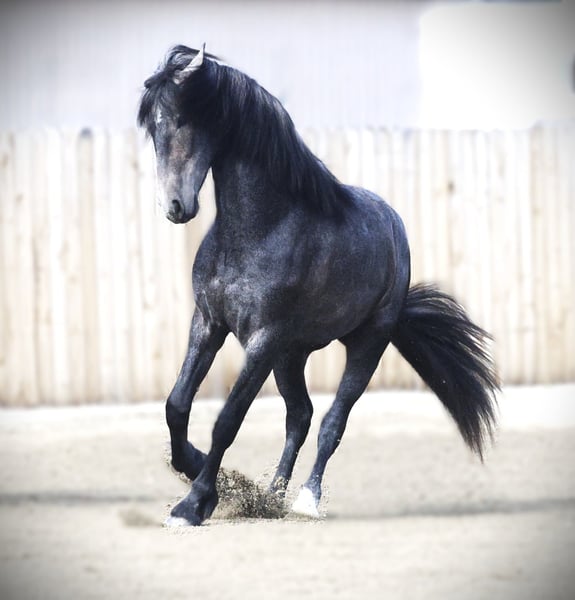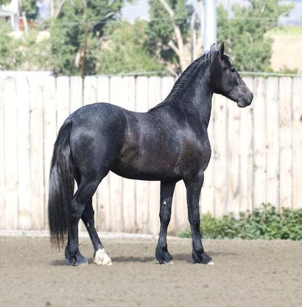 🍁𝒕𝒉𝒆 𝐅𝐀𝐋𝐋 𝑺𝒑𝒆𝒄𝒕𝒂𝒄𝒖𝒍𝒂𝒓🍁 Happening now thru MONDAY | SEPTEMBER 22nd - Available EXCLUSIVELY on HorseBid's website! For more details and to register visit: www.Horsebid.com CONSIGNOR CONTACT: Shawna Johnston 406-531-1614 LOCATION: Stevensville MT BREED: Warlander REGISTERED: Yes REGISTERED NAME: SIR BASTION van DREAM GAIT COLOR: Grey HEIGHT: 15 AGE: 2 GENDER: Gelding 🖤 𝔹𝖔𝖑𝖉 & 𝔹𝖊𝖆𝖚𝖙𝖎𝖋𝖚𝖑 – A young Warlander gelding with endless potential 🖤 – Sir Bastion van Dream Gait – 2023 Friesian Heritage Horse (50% Friesian / 50% Andalusian) | Gelding | 15.0h (expected 15.3h+) | Black turning gray with star & left hind sock – 📍 Located in Stevensville, MT ––– If you’ve been searching for a young prospect with both the royal presence of a baroque Friesian and the mindset of a trusted PRE partner, meet Sir Bastion van Dream Gait. Bred for beauty, brains, and versatility, Bastion is the perfect blend of two legendary breeds: the noble Friesian and the athletic Andalusian. His sire, Daario van Dream Gait (by the renowned Sape 381), brings size, bone, and that unmistakable Friesian elegance. His dam, Muñeca, is an IALHA-registered Andalusian with Spanish lines known for agility, collection, and expressive movement. The result is a young gelding destined to excel in disciplines ranging from classical dressage and working equitation to ranch versatility and pleasure riding. At just 2 year old, Bast already stands a well-proportioned 15.0 hands and is expected to mature around 15.3h to 16h. He’s handled daily and has all the right foundations in place: ✔ Halter broke, leads, loads, ties quietly, and bathes with ease ✔ Calm and curious nature — he thrives on human interaction and seeks attention ✔ Comfortable wearing and packing a saddle on short trail outings already ✔ Great manners on the ground True to his “in-your-pocket” personality, Bast is the kind of horse who greets you at the gate and follows you around just to see what you’re up to. His quiet, people-oriented nature makes him a joy to work with now, and a solid investment for the future. With his striking looks, kind eye, and intelligent mind, Bastion is an exceptional blank canvas ready to be shaped into your dream partner. Whether your vision includes elegant arena work, adventurous trail rides, or a future in competition, this young Warlander has the presence, trainability, and quality to take you there. This is where Unicorns come from!