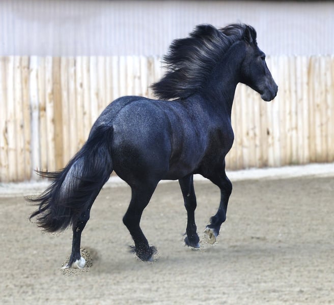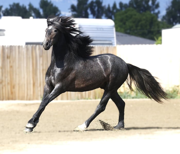 🍁LE SPECTACLE DE L'AUTOMNE🍁 Se déroule actuellement jusqu’au LUNDI 22 SEPTEMBRE – Disponible EXCLUSIVEMENT sur le site d’HorseBid ! Pour plus de détails et pour vous inscrire, rendez-vous sur : www.Horsebid.com CONTACT VENTEUR : Shawna Johnston 406-531-1614 LIEU : Stevensville, Montana RACE : Warlander ENREGISTRÉ : Oui NOM ENREGISTRÉ : SIR BASTION van DREAM GAIT COULEUR : Gris TAILLE : 15 mains ÂGE : 2 ans SEXE : Poulain (gelding) 🖤 UN JEUNE WARLANDER AUDACIEUX ET MAGNIFIQUE, AUX POTENTIELS INFINIS 🖤 – Sir Bastion van Dream Gait – Cheval de patrimoine Friesian 2023 (50 % Friesian / 50 % Andalou) | Poulain | 15,0 hh (attendu 15,3 hh+) | Noir devenant gris avec étoile et chaussette à la patte arrière gauche – 📍 Situé à Stevensville, MT ––– Si vous cherchez un jeune prospect alliant la prestance royale d’un Friesian baroque et l’esprit d’un partenaire PRE fiable, faites la connaissance de Sir Bastion van Dream Gait. Élevé pour la beauté, l’intelligence et la polyvalence, Bastion est le parfait mélange de deux races légendaires : le noble Friesian et l’athlétique Andalou. Son père, Daario van Dream Gait (par le célèbre Sape 381), apporte taille, ossature et cette élégance inégalable des Friesians. Sa mère, Muñeca, est une Andalouse enregistrée à l’IALHA, issue de lignées espagnoles reconnues pour leur agilité, leur collection et leur mouvement expressif. Le résultat est un jeune poulain destiné à exceller dans diverses disciplines, du dressage classique et de l’équitation de travail à la voltige de ranch et au loisir. À seulement 2 ans, Bastion mesure déjà 15 mains bien proportionnées et devrait atteindre environ 15,3 à 16 mains à maturité. Il est manipulé quotidiennement et possède toutes les bases essentielles : ✔ Halter entraîné, mène, charge, s’attache calmement et se lave facilement ✔ Nature calme et curieuse — il adore l’interaction humaine et recherche l’attention ✔ Confortable avec la selle lors de sorties en trail courtes ✔ Bonnes manières au sol Fidèle à sa personnalité “collé à la jambe”, Bastion est le genre de cheval qui vous accueille à la porte et vous suit partout pour voir ce que vous faites. Sa nature tranquille et orientée vers l’humain en fait un plaisir à travailler dès maintenant, tout en étant un investissement solide pour l’avenir. Avec ses traits remarquables, son regard doux et son esprit intelligent, Bastion est une toile vierge exceptionnelle prête à être façonnée selon votre rêve. Que votre vision inclue un travail élégant en dressage, des randonnées aventureuses ou une future carrière en compétition, ce jeune Warlander possède la présence, la capacité d’apprentissage et la qualité pour vous y mener. C’est de là que viennent les licornes !