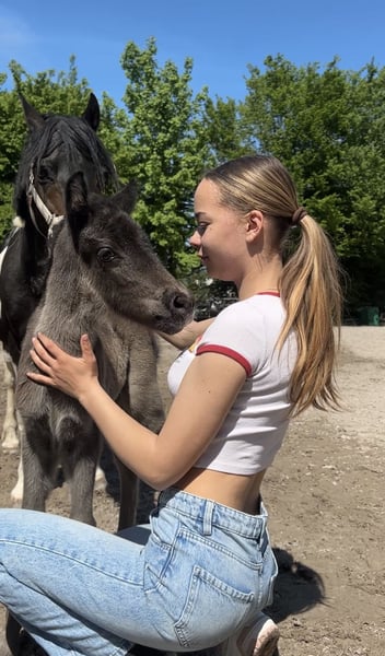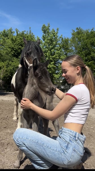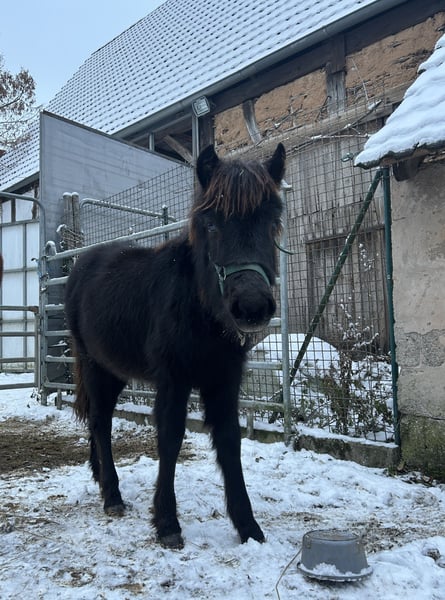 Wunderschönes, menschenbezogenes Pony sucht liebevolles Zuhause Unsere am 26.04.2025 geborene Jährlingsstute sucht ein neues, förderndes Zuhause. Sie ist ein absolut liebenswertes und aufgeschlossenes Pony, das durch ihren freundlichen und menschenbezogenen Charakter besticht. Im täglichen Umgang zeigt sie sich sehr brav, verschmust und kontaktfreudig – sowohl gegenüber Menschen als auch im Umgang mit anderen Pferden. Die Kleine wurde mit viel Liebe und Sorgfalt aufgezogen. Es wurde großen Wert auf eine gute und liebevolle Grunderziehung gelegt. Sie kennt bereits das Fohlen-ABC, gibt brav die Hufe, lässt sich führen und arbeitet aufmerksam mit. Außerdem konnte sie bereits viele Alltagssituationen kennenlernen, wie zum Beispiel: • Spaziergänge • Hängerfahren • Putzen und allgemeine Pflege • Kontakt zu Kindern (stets freundlich und geduldig) Dabei zeigt sie sich neugierig, gelassen und sehr lernwillig. Das geschätzte Endmaß liegt bei ca. 1,25 m – 1,30 m. Beide Eltern haben ein Stockmaß von etwa 1,25 m und überzeugen ebenfalls durch ihren freundlichen, ausgeglichenen und aufgeschlossenen Charakter. Mit ihrem tollen Wesen bringt sie beste Voraussetzungen mit, um später ein verlässliches Kinderpony zu werden – sei es für die ersten Reitversuche, als Kutschpony oder einfach als treuer Begleiter. Momentan steht sie in einer fohlenherde auf einer Koppel. Wir wünschen uns für sie ein Zuhause, in dem sie weiterhin liebevoll und fair gefördert wird. Bei Interesse oder Fragen freuen wir uns über eine Nachricht!