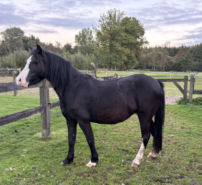 Prachtige zwarte fokmerrie met interessante afstamming Geboren in 2020 Braaf in omgang, bij de hoefsmid en op de trailer. De merrie heeft een stamboom en is ingeschreven bij zowel NWPCS en WPCV Haar entingen zijn up to date Ik heb inmiddels 2 prachtige veulens met haar gefokt, het veulenen gaat probleemloos en ze is een goede en zorgzame moeder Ze is voor 2026 niet drachtig Ze is niet beleerd onder het zadel of voor de koets, gezien haar leeftijd is daar misschien nu wel de tijd voor. Omdat ik haar 2 dochters ( voorlopig) wil aanhouden zoek ik voor haar een nieuw en vooral goed huis Voor evt. vragen en of meer info mag u mij een bericht sturen