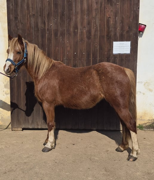 Roweta ist ein schmusiges Lieblingspony. Sie gibt immer ihr bestes. Sie ist in unserer Reitschule seit einem Jahr von guten, leichten Reitern geritten. Unerschrocken in der Halle, auf dem Platz und im Gelände. Kennt Hunde, Traktoren und Straßenverkehr. Wir haben viel verschiedene Sacgen angeboten, unter anderem Showreiten (Luftballons zerstechen oder mit einem Tennisschläger während des Springens Bälle abschlagen....). Sie zeigt sich sehr engagiert. Auf Grund ihres Alters bedarf sie noch weiterer Ausbildung. Sie wird such sicher auch gerne auf Turnieren beweisen wollen. Rowenta trägt Kinder, Jugendliche und kleinere Erwachsene.