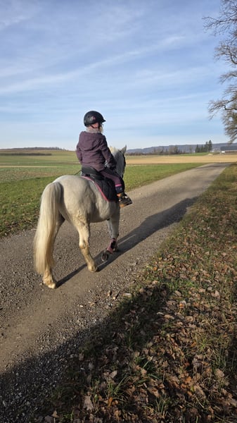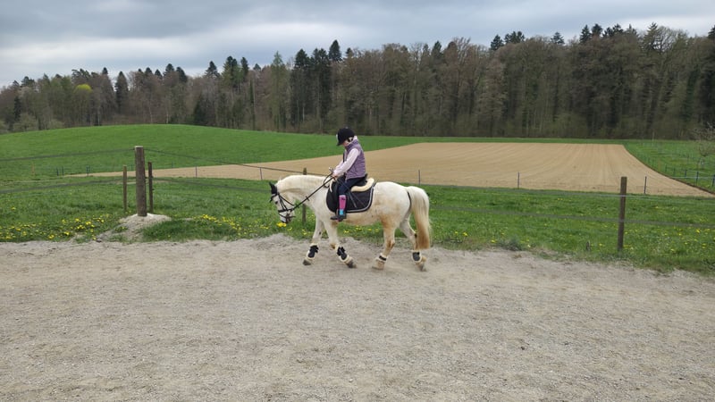 Prinz ist ein wunderschöner, 18-jähriger Schimmelwallach mit einem lieben und zuverlässigen Charakter. Früher lief er in einer Reitschule und wurde bei uns hauptsächlich im Gelände von meiner 6-jährigen Tochter geritten. Auch beim Muki-/Vaki-Reiten macht er brav mit und bringt Anfänger sicher von A nach B. Auf dem Reitplatz zeigt sich Prinz ebenfalls brav, benötigt dort jedoch eine konsequente und sichere Führung. Im Gelände ist er ein echter Verlasspartner und bereitet Gross und Klein viel Freude. Prinz ist sehr sozial und herdenverträglich. Aktuell lebt er mit unseren Shettys im Offenstall, was er sehr schätzt. Er ist lange Weidezeiten gewohnt, vorne beschlagen und hinten barhuf. Da meine Tochter sich nun vermehrt dem Springsport widmen möchte, haben wir uns schweren Herzens entschieden, für Prinz ein neues Zuhause zu suchen. Wir wünschen uns für ihn einen liebevollen Endplatz bei geduldigen Menschen oder einer netten Familie mit Kindern, die mit ihm noch viele schöne Ausritte geniessen möchten. Prinz ist nicht turniergeeignet, da ihn solche Situationen stressen. Daher suchen wir bewusst einen ruhigen und passenden Platz, an dem sein Wohl an erster Stelle steht. Platz vor Preis – kein Notverkauf.