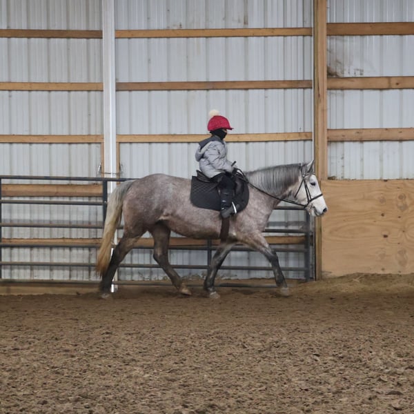♦️𝐍𝐄𝐖 𝐘𝐄𝐀𝐑'𝐒 𝑬𝒙𝒕𝒓𝒂𝒗𝒂𝒈𝒂𝒏𝒛𝒂♦️ Happening now thru MONDAY | JANUARY 12th - Available EXCLUSIVELY on HorseBid's website! For more details and to register visit: www.Horsebid.com CONSIGNOR CONTACT: Blackstone Stables 248-390-6831 LOCATION: Howell, MI BREED: Welsh Quarter Cross REGISTERED: No REGISTERED NAME: Pixie COLOR: Dapple Grey HEIGHT: 14 AGE: 5 GENDER: Mare We would like to introduce Pixie! This adorable dappled grey mare stands 14hh at 5 yo, with a big body. She is a Welsh Quarter X. Pixie has beautiful conformation and a mind to match. She is an elegant mover and is very light on her feet. Pixie is a total doll on the ground and plays well with others in turn out. Pixie walk trot and canters with ease, she’s knows her leads, will do flying changes when asked and her breaks are good. She has seen the trails, woods, water and wildlife. She’s coursing around at 2 ft 6 with plenty of scope to go higher. Pixie is quiet enough to tote around a beginner as well. She jumps in beautiful form! Pixie has been showing over fences and is one who can steep into a new environment with out batting an eye. She is excellent with chaos, crowds and being in a new environment. She loves the kiddos and is a very forgiving type of ride. She has easy changes that will be auto in no time! Pixie has participated in Halloween costume parades and has carried the flag. Pixie has been over bridges tarps, pool noodles and bridges with total ease. She is currently working in an English lesson program and she’s a favorite among the kids. Give us a call to meet her. Pixie lives in Howell, MI 48855 please give me a call or text to meet her 248-390-6831!
