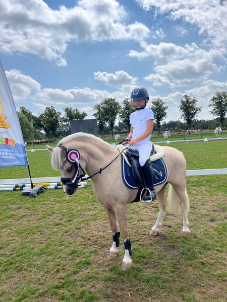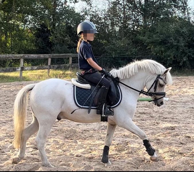 🌟 Blickfang zum Verkauf – Wunderschönes Palomino-Pony mit viel Ausstrahlung! 🌟 Welsh Pony – Rüde – 5 Jahre alt – A-Pony – 116,5 cm – Röntgenologisch und klinisch geprüft Suchst du ein zuverlässiges Kinderpony, das gleichzeitig ein echter Hingucker ist? Dieses wunderschöne Palomino mit vier hohen weißen Beinen und breiter Blesse ist ein echter Blickfang und besitzt ein fantastisches, ehrliches Temperament. Gekauft vom Züchter und vollständig gesund: röntgenologisch und klinisch geprüft. Abstammung: Cwmhendy Buster X Blaenau Dion X Friars Superman* Vater, zugelassener Hengst: Penpadrig Brynmor* (siehe letztes Foto) 💛 Charakter & Umgang • Sehr lieb und ruhig, ideal für Anfängerreiter. • Liebt Aufmerksamkeit: Stundenlanges Kuscheln und Putzen. • Sehr menschenbezogen und freundlich. • Brav beim Schmied, Tierarzt, Hufschmied, Waschen. • Starke Hufe. • Keine Stallprobleme. • Brav an der Hand – kann problemlos von einem kleinen Kind auf den Hänger geführt werden. 🐴 Ausbildung & Erfahrung • 5 Jahre alt und zügellang. • Wöchentlich bei Ponyclub-Unterricht dabei. • Einmal an Bixie-Wettbewerb teilgenommen und an einem kleinen Vereinswettkampf (Reiter hatte kein Interesse an weiteren Turnieren). • Leicht zu reiten und kooperativ. • Sanft im Maul, läuft leicht an der Zügel. • Geeignet für den Sport sowie für Anfänger und junge Reiter. • Lernt schnell und macht gerne mit. 🌿 Verkehr & Umgebung • Verkehrssicher. • Brav bei Ausritten im Gelände. • War mit bei der Sankt-Martins-Feuer der Nachbarschaft. • Einfach in neuen Situationen. 🩺 Gesundheit & Pflege • Immer regelmäßig geimpft und entwurmt. • Kürzlich beim Tierarzt gewesen. • Korrekte Bauweise und starke Hufe. ✨ Ein echter Blickfang mit goldigem Charakter: lieb, ehrlich und bereit für sowohl Anfänger als auch den Sport. 📍 Standort in den Niederlanden (Meijel) 📞 Für weitere Informationen bitte Kontakt aufnehmen unter: +31 6 24332911