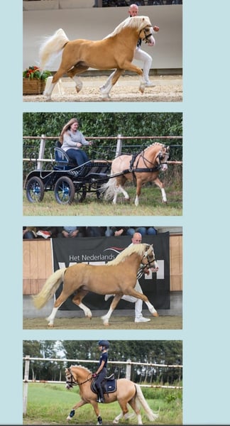 🌟 Eye-Catcher for Sale – Beautiful Palomino Pony with Lots of Presence! 🌟 Welsh Pony – Gelding – 5 years old – A Pony – 116.5 cm – Radiographically & clinically approved Are you looking for a reliable children's pony that is also a true eye-catcher? This stunning Palomino with four tall white legs and a broad blaze is a real gem and has an excellent, honest temperament. Purchased from the breeder and fully healthy: radiographically and clinically approved. Pedigree: Cwmhendy Buster X Blaenau Dion X Friars Superman* Sire approved stallion: Penpadrig Brynmor* (see last photo) 💛 Character & Temperament • Very sweet and calm, ideal for beginner riders. • Loves attention: hours of cuddling and grooming. • Very people-oriented and friendly. • Calm at the farrier, vet, clipping, and washing. • Strong hooves. • No stable vices. • Well-behaved on the lead – can be easily loaded onto a trailer by a small child. 🐴 Training & Experience • 5 years old and saddle-trained. • Attends pony club lessons weekly. • Has participated in a Bixie competition and a small club event (rider had no interest in more competitions). • Easy to ride and cooperative. • Gentle in the mouth, easily accepts the contact. • Suitable for both sport and beginner/young riders. • Learns quickly and enjoys participating. 🌿 Traffic & Environment • Traffic-proof. • Calm on outdoor rides. • Has been to the neighborhood’s St. Martin’s fire event. • Adapts easily to new situations. 🩺 Health & Care • Always vaccinated and dewormed on schedule. • Recently had a dental check. • Correct conformation and strong hooves. ✨ A true eye-catcher with a golden character: sweet, honest, and ready for both beginner riders and sport. 📍 Located in the Netherlands (Meijel) 📞 For more information, please contact us at: +31 6 24332911