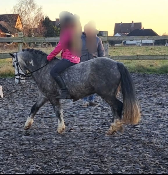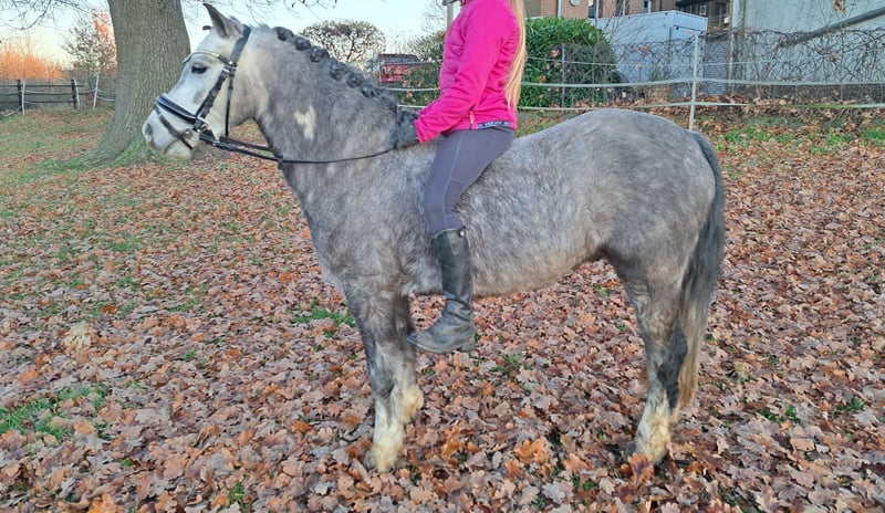 Wir verkaufen unseren bildhübschen 5j.Welsh A Apfelschimmel Wallach, da er für meine Tochter zu klein ist. Johny zeigt sich in der täglichen Arbeit immer lieb und ruhig. Beim Putzen und Fertigmachen wartet er geduldig. Er mag es gekuschelt zu werden und ist den Kindern stets freundlich zugewandt. Johny lässt sich von den Kindern in allen 3 Grundgangarten frei reiten. Dabei ist er immer lieb, hat ruhige Grundgangarten und verzeiht Reiterfehler sofort. Er kennt es mit den kleinsten Reitanfängern an der Longe zu laufen und hört dabei mit Perfektion auf die Stimme des Longenführers. Johny ist motiviert und mit Spass beim Springen dabei. Er springt bereits einzelne Sprünge mit guter Übersicht in einem guten Grundtempo. Eine weitere Leidenschaft ist das Ausreiten. Durch seine absolute Zuverlässigkeit geht er in allen 3 Grundgangarten mit meiner Tochter ins Gelände, sogar in der Dämmerung hat er keine Probleme. Auch kann man auf ihm Turnübungen machen und ihn nur mit Pad oder ohne Sattel reiten. Buckeln oder davon flitzen sind absolute Fremdwörter für ihn. Er ist ein ganz besonderer, lieber Schatz, den man so selten findet. Auch geht er ein und zweispännig vor der Kutsche. Gerne verschicken wir Videos von verschiedenen Situationen mit ihm, damit Sie sich vorab einen Eindruck von ihm machen können. Johny wird nur in liebevolle, pferdegerechte Hände verkauft. 015236768283 nur WhatsApp. Lg