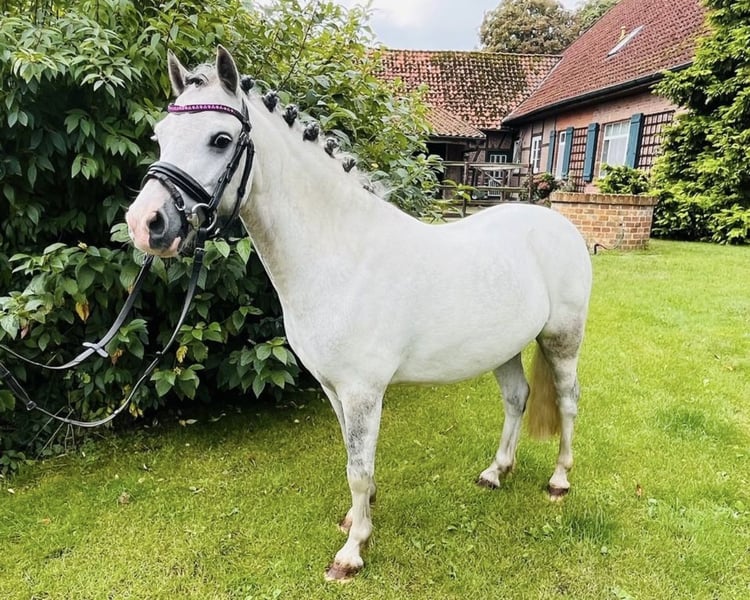 For sale is a charming 7-year-old Welsh Pony gelding, approximately 125 cm tall, grey – a real eye-catcher and a true all-rounder! This wonderful children's pony loves its rider and brings plenty of joy. He is mostly easy-going and very well-behaved – yet, as a pony, he sometimes tests boundaries to see if you're serious, but he never becomes nasty. A typical pony stubbornness, but with consistent handling, he is a real treasure and a reliable partner. We have worked with him in various disciplines: dressage, jumping, and cross-country. He has competition experience in all three areas, as well as in lead-rein classes, where he is very well-behaved and relaxed, even in costume. He is also well-behaved when ridden without a saddle – perfect for relaxing and having fun. For balance and further training, he has been worked on with a double longe line. He is absolutely unproblematic when traveling in a trailer. He shows no pony-specific health issues such as laminitis or similar. Currently, he is not in full training because the child has lost interest, which is also the reason for his sale. Trial rides are possible at any time. Contact & Videos Sold on behalf of the owner Video and further information at: 0172 4656337 A truly wonderful children's pony that is looking for a new favorite person!