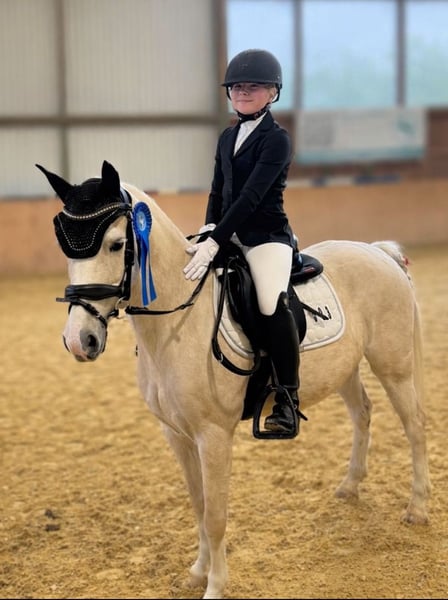 🌟 Bildschöne Welsh Stute (11 Jahre) – Palomino mit vollem Papier – absolutes Verlasspony 🌟 Zum Verkauf steht eine 11-jährige Welsh Stute mit vollem Papier, 1,31 m groß, in traumhafter heller Palomino-Farbe – eine echte Augenweide! Diese bezaubernde Stute ist ein wahres Kinderschleifenpony: Im Umgang ein Schatz, brav, unkompliziert und von jedem Kind zu händeln. Sie überzeugt durch ihr ausgeglichenes Wesen und ihre Verlässlichkeit – ein Pony, dem man sein Herz sofort schenkt. In der Dressur ist sie absolut leichtrittig und auch schwächere Reiter lässt sie immer gut aussehen. Sie ist bislang immer mit einer Schleife nach Hause gekommen 🤩. Springt zuverlässig einen Parcours, bringt dabei aber ordentlich GO mit. Sie geht brav auch alleine ins Gelände Sie ist leistungsbereit und motiviert – die perfekte Kombination aus Ehrgeiz und Verlässlichkeit. Der Verkauf fällt der Familie unglaublich schwer und das Pony steht auch nur zum Verkauf, da ihre derzeitige Besitzerin ihr inzwischen leider entwachsen ist. Daher suchen wir für dieses Ausnahmepony ein absolutes 5-⭐️-Zuhause, in dem sie weiterhin geliebt, gefördert und wertgeschätzt wird. Einen solchen Charakter, Qualität und Einstellung findet man nur selten – echte Herzensponys wie sie sind rar. Bei ernsthaftem Interesse freuen wir uns über eine persönliche Nachricht. Mehr Informationen gerne auch via WhatsApp oder telefonisch unter +49 173 7359633