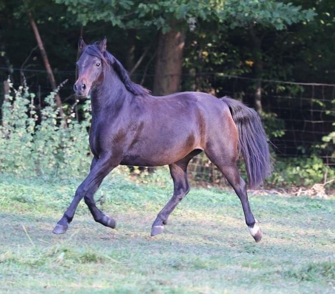 Welsh B mare, 11 years old, 13.3 hh – sporty children's pony with heart and power We are offering our reliable and talented Welsh B mare, who competed in riding school operations last year. She shows great enthusiasm and motivation especially in jumping – a true little sport pony that loves to work. She is a friendly, fearless pony that does not spook, buck, or shy away, and always strives to please her rider. At the same time, she is quick and has her own forward drive – therefore, she is not suitable for beginners but ideal for experienced children or light junior riders who are already secure in the saddle and enjoy a lively pony. She has also competed in shows and behaved well, always eager and cooperative. Suitable as: - Leisure and competition pony - For capable children and young riders - Max. rider height: 5'3" (1.60 m) - Max. rider weight: 99 lbs (45 kg) - Barefoot - Easy to load A pony that enjoys jumping, hacking, and varied work. Perfect for families, ambitious young riders, or riding schools seeking a sporty, reliable pony – but not for absolute beginners, as she can sometimes be quick. For inquiries, please contact Tel. 015253573292 Videos available on request