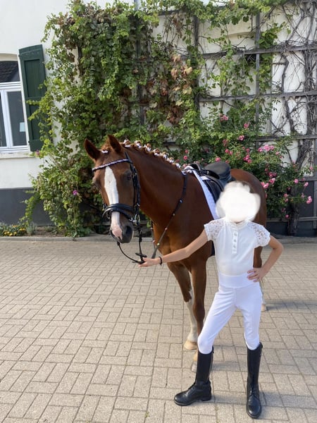Schweren Herzens abzugeben: Welsh B Stute Sunny 15 Jahre alt Stockmaß: 1,36m Geburtsdatum: 20.04.2011 Farbe: Fuchs Unsere liebevolle und kinderfreundliche Ponystute sucht ein neues Zuhause mit viel Liebe. Sunny ist ein soziales Pony, dass sich in ihrer Stuten Herde wohlfühlt. Sie ist hier eher rangniedrig. Sie ist ein vielseitiger Allrounder mit Erfahrung in: Dressur Springen Voltigieren Bodenarbeit Gebisslos reiten Ausreiten Sie war vor drei Jahren auch noch erfolgreich im Fahrsport unterwegs. Bisher hat sie Erfahrung in der Dressur mit Kindern bei kleinen WBO Turnieren in der Führzügelklasse und E-Dressur sammeln können. Sunny geht auch allein ins Gelände und ist hier brav und nervenstark. Man kann jeden Quatsch mit ihr machen. Sie ist ein Verlasspony! Sunny ist super Kinderfreundlich (von 3-15 jährigen Kindern geritten) Sunny hat keine Unarten und auch bocken ist ihr fremd. Sie läuft Barhuf. Sunny lässt sich easy verladen (auch von Kindern), ist lieb beim Tierarzt( z.B. impfen) und ist Schmiedefromm. Sunny ist vollständig geimpft und entwurmt, sie ist regelmäßig beim Schmied und einmal jährlich beim Zahnarzt. Derzeit lebt unser Pony abends/nachts in einer Box und tagsüber auf dem Paddock/Weide. Eine artgerechte Haltung mit täglichem Auslauf ist uns sehr wichtig. Wir wünschen uns, dass Sunny in ein liebevolles Zuhause mit Familienanschluss kommt. Auch für die Zucht wäre sie interessant. Bei Fragen gerne melden. Kontakt gerne über das Kontakformular oder Whats App