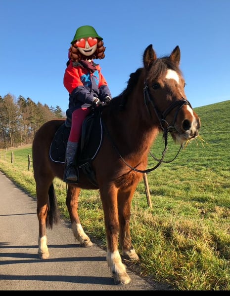Unsere wunderschöne 16 jährige, 1,36m große Stute ist ein zuverlässiges Kinderpony. Ob im Gelände, im See oder auf dem Turnier. Sie ist mit und ohne Ausbinder problemlos zu reiten. Diese tolle Stute hat unsere Tochter von den ersten Schritt Trab Prüfungen bis hin zur E Dressur und E Springen getragen. Sie kennt Auswärtstraining und verladen und ist dabei immer zuverlässig und absolut artig. Sie bringt Kinderaugen zum Strahlen und deshalb haben wir uns entschieden, dass sie noch ein Kind so glücklich machen darf wie unsere Tochter. Mit einem Herz aus Gold tut sie alles für ihren Reiter. Sie ist seit 9 Jahren in unserem Besitz und war noch nie krank. Die Stute ist vorne Beschlagen und ist beim Hufschmied natürlich auch super brav. Das Zubehör kann bei Bedarf mit erworben werden. Wir haben einen Jugend Dressur- und Springsattel für die Stute. Nur in allerbeste Hände abzugeben. Sie steht bei uns in Stutengesellschaft täglich auf der Wiese. Täglicher Weidegang ist für uns eine Bedingung. Sie ist bestens geeignet für den Einsatz im Sport- und Freizeitbereich. Bei Interesse stehe ich Ihnen gerne für weitere Informationen und eine Besichtigung zur Verfügung.