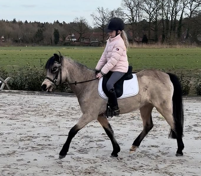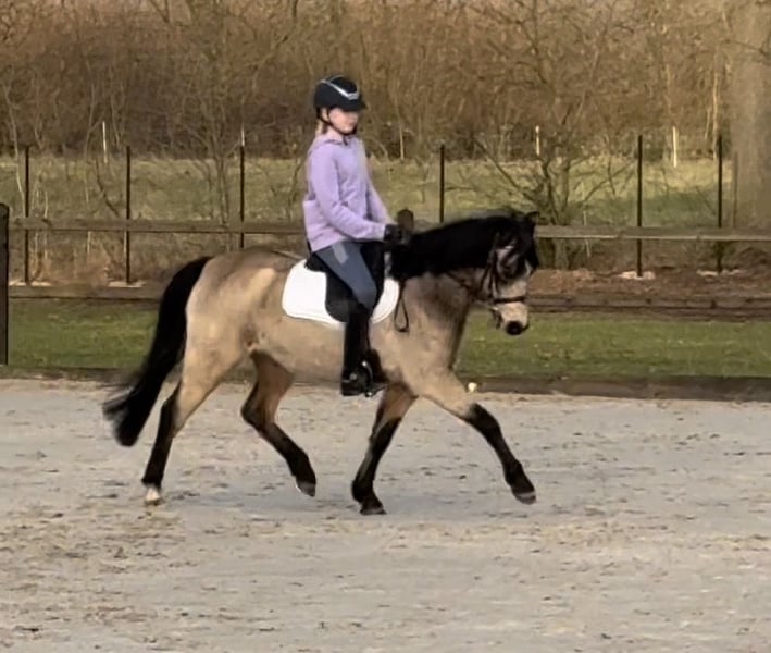 Diese charmante Falbstute besticht durch ihre freundliche Ausstrahlung und ihr angenehmes Wesen. Sie ist bei uns geboren, und mit Kinder, anderen Ponys und viel liebe aufgewachsen. Sie kennt absolut alles, ist freundlich, neugierig, und ruhig. Mit einem Stockmaß in moment von 131 cm, und noch überbaut, wird sie geschätzt bei 135 fertig sein. Sie ist nur wenige Mal unter Sattel, aber direkt willig, und unkompliziert. Sie ist gesund, gut sozialisiert und wurde bereits liebevoll an den Umgang gewöhnt. Aufgrund ihres jungen Alters bietet sie eine hervorragende Gelegenheit, sie individuell nach den eigenen Vorstellungen aufzuziehen und zu fördern. Ob für den Freizeitsport, die Zucht oder als zukünftiges Familienpferd – diese Welsh-B Stute überzeugt durch ihre Qualität und ihr freundliches Wesen. Platz vor Preis! Kein Schulbetriebe bitte! Bei Interesse stehe ich gerne für weitere Informationen und eine Besichtigung zur Verfügung.