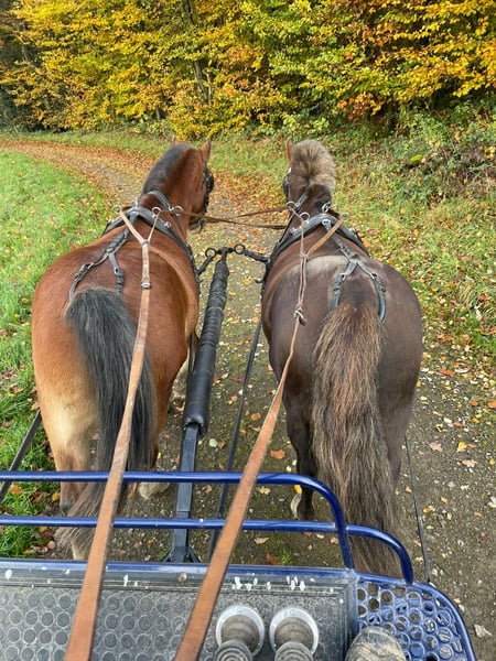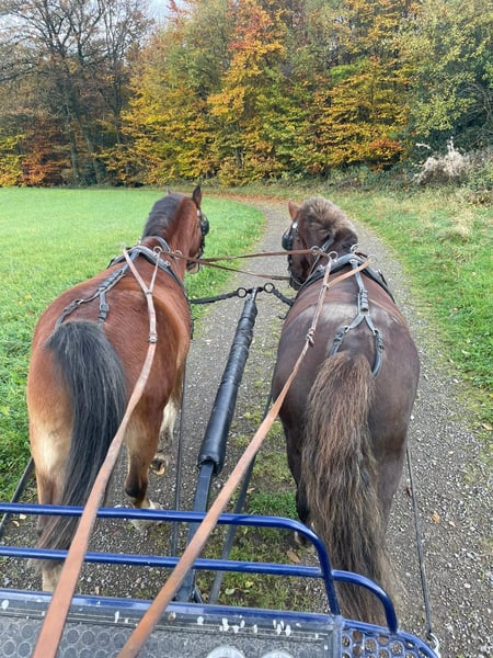 Unser Fuchswallach Filou (Stockmaß ca. ca. 1,30m, geboren 2015) sucht ein neues Zuhause, da unsere Kids zu groß geworden sind. Filou ist ein zuverlässiger, braver und kinderlieber Ponywallach, der sowohl geritten als auch ein- und zweispännig gefahren ist. Wir haben ihn seit er drei Jahre alt ist. Er wurde von uns und der Familie selbst ausgebildet. Er kennt Veranstaltungen, Straßenverkehr, ist nervenstark und unkompliziert. Aktuell läuft Filou im Reitschulbetrieb, wo er tagtäglich zeigt, wie geduldig und zuverlässig er mit Kindern umgeht – egal ob an der Longe, im Unterricht oder bei kleinen Ausritten. Er steht in einer gemischten Ponyherde. Wir wünschen uns für Filou ein liebevolles Zuhause auf Lebenszeit, gerne bei jemandem, der mit ihm Kutsche fährt und ihm eine abwechslungsreiche Aufgabe bietet. Filou wird einzeln oder als Gespann abgegeben. Preis pro Pony. Bei Interesse gerne melden!