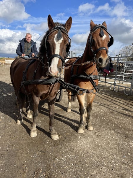 Notre poney bai rouan, Filou (taille environ 1,30 m, né en 2015), cherche une nouvelle famille, car nos enfants ont grandi. Filou est un poney fiable, gentil et très apprécié des enfants, qui a été monté aussi bien qu’attelé en simple et en paire. Nous le possédons depuis qu’il a trois ans. Il a été formé par nos soins ainsi que par la famille. Il connaît les concours, la circulation routière, est calme et facile à gérer. Actuellement, Filou travaille dans une école d’équitation, où il montre chaque jour sa patience et sa fiabilité avec les enfants – que ce soit à la longe, en cours ou lors de petites balades. Il évolue dans un groupe de poneys mixte. Nous souhaitons offrir à Filou un foyer aimant pour la vie, idéalement chez quelqu’un qui aime faire du driving avec lui et lui proposer une activité variée. Filou peut être vendu seul ou en paire. Prix par poney. N’hésitez pas à nous contacter si vous êtes intéressé !