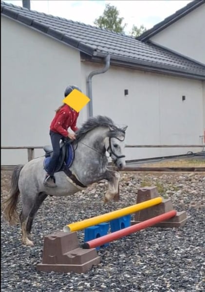 We are selling our beautiful, child-friendly 10-year-old Welsh gelding Johnny, who stands at a wonderful height of 132 cm. Johnny has won numerous show jumping and dressage WBO competitions or has been successfully placed. Due to his dual talent, he excels in both dressage and jumping with his incredible performances. Thanks to his absolute rideability and his patient, loving nature, even the smallest beginner riders can ride and jump him alone in the arena or on the trails. The children can also have fun riding tricks on him. This is possible on the lunge line or even while riding freely. When riding with a pad and neck ring, Johnny remains calm and responds to the slightest aids and the children's voice. Johnny is always reliable and calm. Bucking, rearing, and rushing are completely foreign to him. When riding, he is not easily distracted by the environment, making it easy to ride him in unfamiliar places. He is just as reliable in the field, galloping over stubble fields and going into the water. With his jumping talent, he can easily clear an 80 cm course. He does this with courage and awareness. He does not know how to stop or run past jumps, making it possible for even smaller children to jump him. Always friendly in demeanor, Johnny is very attentive to the children. They can bring him in from the pasture alone, groom him, wash him off, braid his mane, etc., and prepare him for riding. Johnny is absolutely herd-compatible; he stands together with both mares and geldings in our open stable. Any child can load him into the trailer alone, making it fun to go to competitions or take trips with the trailer. We hope he finds a wonderful new home where he will be loved just as much and can teach another little rider how to ride. A valid vet check without findings has already been done for the sale. A treasure that is so rarely found. We would be happy to send videos of him via WhatsApp at 015236768283. Best regards.
