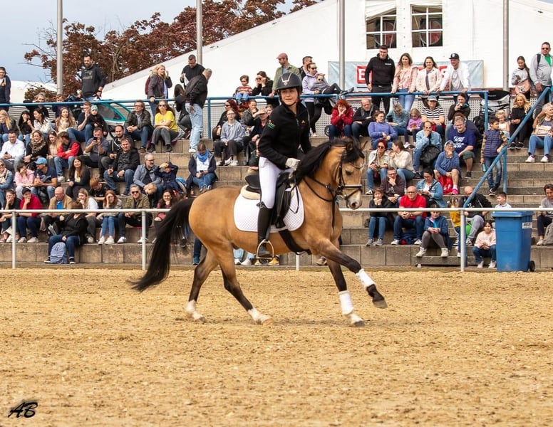Spirit ist ein wunderschönes Welsh-B-Pony mit einem liebevollen Charakter und einer besonderen Ausstrahlung. Der 12-jährige Falbe überzeugt durch seine freundliche Art und seine Vielseitigkeit. Er liebt es, in der Natur unterwegs zu sein und genießt Ausritte ebenso wie abwechslungsreiche Arbeit auf dem Platz. Auch über kleine Sprünge zeigt er Motivation und Talent. Spirit ist ein echtes Rassepony mit typischem, elegantem Welsh-Ausdruck. Ein besonderes Highlight: Spirit wird jährlich bei der Rassepräsentation auf dem Maimarkt vorgestellt und ist seit mehreren Jahren Model für den bekannten Reitartikelhersteller Krämer. Dadurch ist er den Umgang mit Menschen, Präsentationen und neuen Situationen gewohnt. Spirit ist ein Pony mit Herz und Charakter und eignet sich für Reiter, die einen vielseitigen Partner für Freizeit, Ausritte und abwechslungsreiche Arbeit suchen. Besonderheiten ✔ liebevolles, menschenbezogenes Pony ✔ vielseitig einsetzbar (Freizeit, Springen, Ausritte) ✔ Rassepony Welsh B ✔ Präsentation auf dem Maimarkt ✔ Model für Reitartikelhersteller ✔ freundlich und motiviert