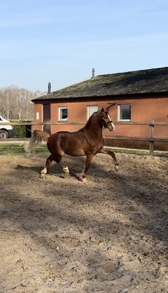 Zum Verkauf angeboten Wunderschöner, äußerst gut bewegender dreijähriger Welsh B Hengst namens Liberty. Er misst 133 cm. Sein Vater ist Moonlight H, seine Mutter die keur- und bevorzugte Stute Warmtebron’s Loddy-Lo. Sein Halbbruder (gleiche Mutter) wurde als Hunter nach Amerika verkauft. Liberty verfügt über drei zusätzliche Gangarten, ein Pony, das wirklich auffällt. Ein sehr schöner Typ mit einem eleganten Kopf. Zudem besitzt er ein äußerst liebes und menschenbezogenes Wesen. Liberty ist gesund und frei von (Haltungs-)Mängeln. Videos sind vorhanden.