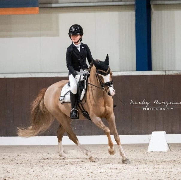 Onze lieve Wynswood Elfie WNE is klaar voor zijn volgende ruiter. Hij is een super knappe vos en meet 126,5 cm. We hebben hem sinds hij 3 jaar oud was, en mijn jongste dochter (nu 11) heeft hem alles zelf geleerd. Elfie is M1 dressuur (bijna het hoogste niveau voor Nederland en dit type pony) en springt 60 cm in wedstrijden en 70 cm in training. Een mooi, consistent tempo, altijd goede stijlpunten! Hij heeft nog meer potentieel, maar mijn dochter wordt te groot. We hebben meegedaan aan een mini-cross, en hij sprong het moeiteloos. Hij is ook superbraaf tijdens bosritten. Hij is altijd zelfverzekerd op onbekend terrein en is nergens bang of nerveus voor. Onze jongste dochter heeft echt alles met hem gedaan, van serieus rijden tot op zijn pony staan, eraf glijden, zich verkleden, noem maar op. Dit maakt hem een echt kinderpony, maar met alle kwaliteiten van een sportpony. Zelfs kleine, onervaren kinderen vinden het geweldig om op hem te rijden! Elfie is vriendelijk met andere pony’s en maakt deel uit van onze kleine kudde in ons paddock paradise, 24/7. Op onze Instagram @deponyzusjes vind je een hoogtepunt van Elfie met allerlei video’s door de jaren heen.