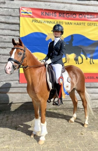 Sunny ist ein unglaublich liebenswerter und zuverlässiger C-Pony, das in der Dressur hervorragend ist, aber auch außerhalb der Turniere ein echter Weggefährte ist. Sie ist gelassen, brav im Umgang und liebt Aufmerksamkeit. 🏅 Erfolge L2 klassifiziert in der Dressur M1 startbereit Vertreten bei den Indoor-Regiomeisterschaften Overijssel am 31.01.2026, in der Klasse L2, mit anschließendem Start in M1. Letzten Sommer: Reserve-Kreis-Kampionschaft Reggedal (B) 3. Platz bei den KNHS Overijsselse Meisterschaften 5. Platz beim nationalen Vereinsmeisterschaft 16. Platz in Deutschland bei den Einzel-Dressur-B Sunny lernt schnell und absolviert ihre Prüfungen mit Freude. Sie ist ein echtes Kinderpony: zuverlässig, gut auf Schenkel- und Zügelhilfen, brav beim Putzen, Flechten und beim Schmied. 🏇 Springen & Ausreiten Sunny mag Springen sehr, ist dabei aber enthusiastisch und schnell. Ein erfahrener Reiter kann sie gut anleiten, für einen unerfahrenen Reiter ist sie weniger geeignet. Ausreiten macht ihr großen Spaß, und sie ist verkehrssicher.