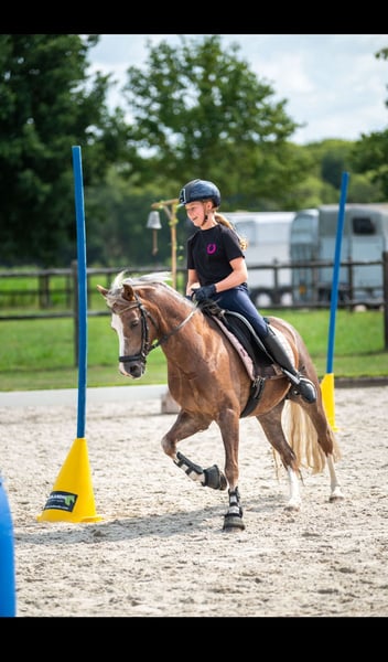 Wegens overstap naar grotere pony komt deze geweldige lieve eyecatcher te koop. 9 jarige merrie van 1.34 Altijd vrolijk en werkwillig, kan ook leuk springen Wij denken dat ze ook geschikt is als hunter pony Meervoudig regio kampioen en Nederlands Kampioen Is een leermeester, past zich aan aan de ruiter Kortom een echte kinder sportpony Kom langs en wordt verliefd op deze topper.