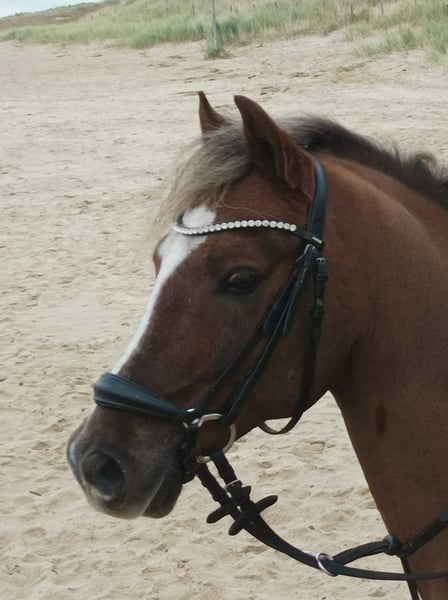 Met pijn in het hart zoeken wij, vanwege de overstap naar een groot paard, een nieuw thuis voor onze Schnappi. De ruin met zijn uitzonderlijk mooie verschijning valt altijd meteen op – een donker vos met een grijze manen en staart. Hij is een karaktervolle, maar ongelooflijk hartelijke pony die zich snel aan zijn mens aanpast en hem laat stralen – mits je hem met duidelijkheid en consequentie benadert. Geen puur beginnerspony, maar met de juiste leiding een echt droompaard en de ideale pony om een ambitieus kind de start in de wedstrijdsport te geven! Hij is wedstrijdervaring en heeft plaatsen en overwinningen behaald in dressuurwedstrijden, springwedstrijden en E-springen. Eind vorig jaar kwalificeerde hij zich voor de finale van de Emslandse talentenjacht U16 en behaalde samen met mijn 11-jarige dochter goede klasseringen in zowel de team- als de individuele ranking tijdens het JVW. Wedstrijdnaam: Llamri Twm Sion Cati Schnappi beschikt over voldoende, maar niet te veel energie, en kent geen ongewenst gedrag zoals bokken, steigeren of trappen. Hij vergeeft fouten van zijn ruiter en helpt bij onpassende afstanden. In het parcours altijd geconcentreerd en helemaal niet onhandig. Hij is fijn aan de hulpen en licht in de hand. Voor hem zou een ambitieus kind met een goed uitgebalanceerde basiszit en ervaren ouders ideaal zijn. Een moeder-dochter combinatie zou heel mooi zijn. Ook buitenritten, solo of in een groep, en natuurlijke sprongen vormen voor hem geen enkel probleem. Het pony is volledig gevaccineerd, regelmatig door de hoefsmid en tandarts gecontroleerd, en kent het laden in de trailer – heel makkelijk. Hij staat de hele dag in een ruinengroep op de wei en ’s nachts in een paddockbox. Wij wensen voor Schnappi een geweldig gezin en een *****thuis waar men goed voor hem zorgt, hem waardeert en verder ontwikkelt. Voor een proefrit inclusief een rijles vragen wij €30, wat bij de koop natuurlijk verrekend wordt.