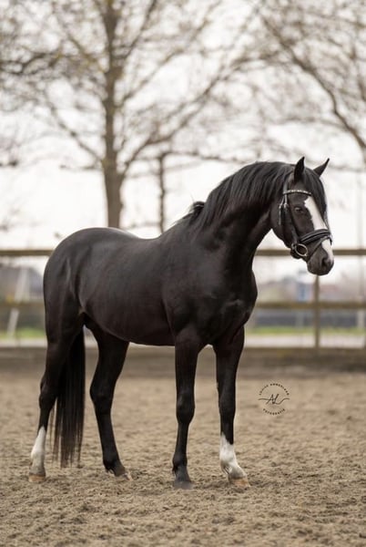 Gelding Welsh-C Pony for Sale We are pleased to offer a beautiful gelding of Welsh-C breed, born in 2019. With a striking black coat, this horse stands out for his presence and well-balanced temperament. At 13.7 hands, he is a versatile pony with great potential for jumping, making him an ideal partner for riders seeking a reliable and good-natured companion for competition or leisure. This Welsh-C has been well handled and is accustomed to working over fences, demonstrating a positive attitude and good willingness in the arena. His size and temperament make him suitable for riders in training as well as for developing horses. Wonderful with kids!!! Please don’t hesitate to contact us for more information or to arrange a visit to meet this magnificent pony in person.