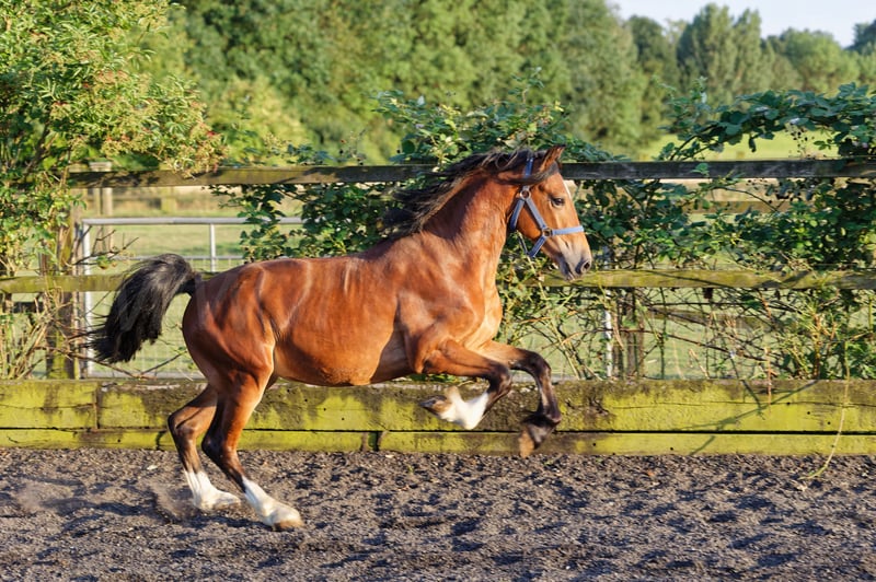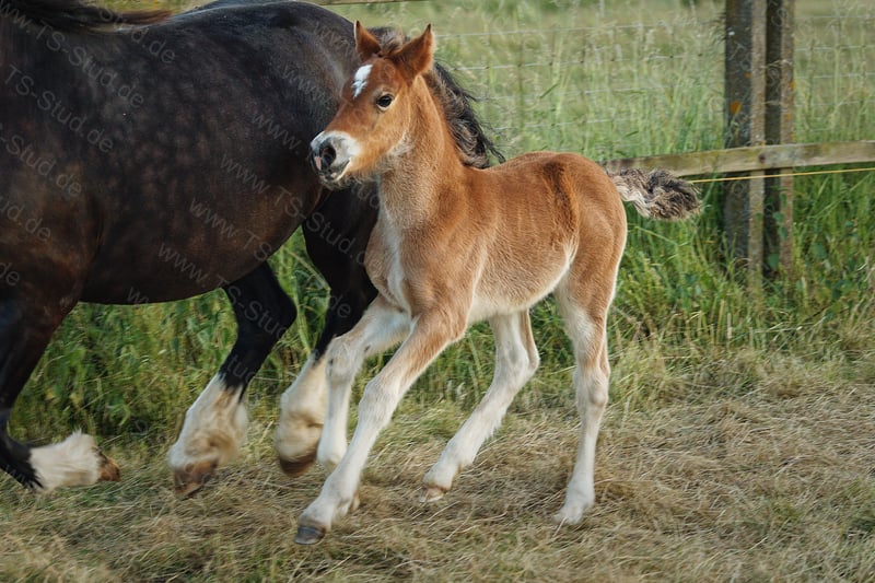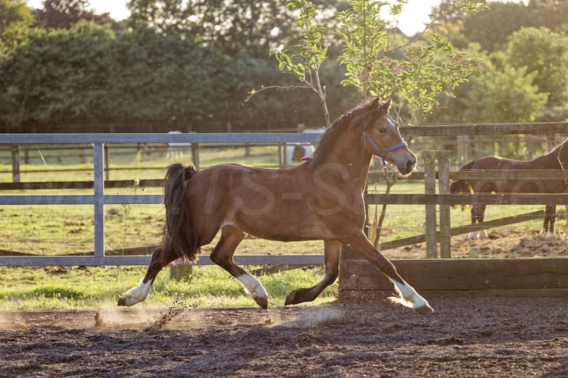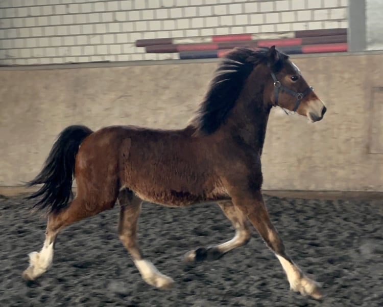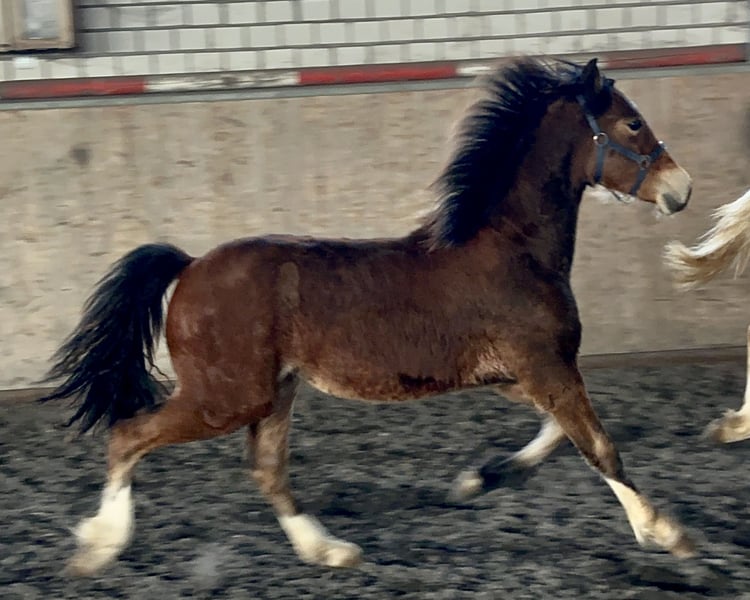 Mooi Welsh Cob hengstveulen met goede bewegingen.